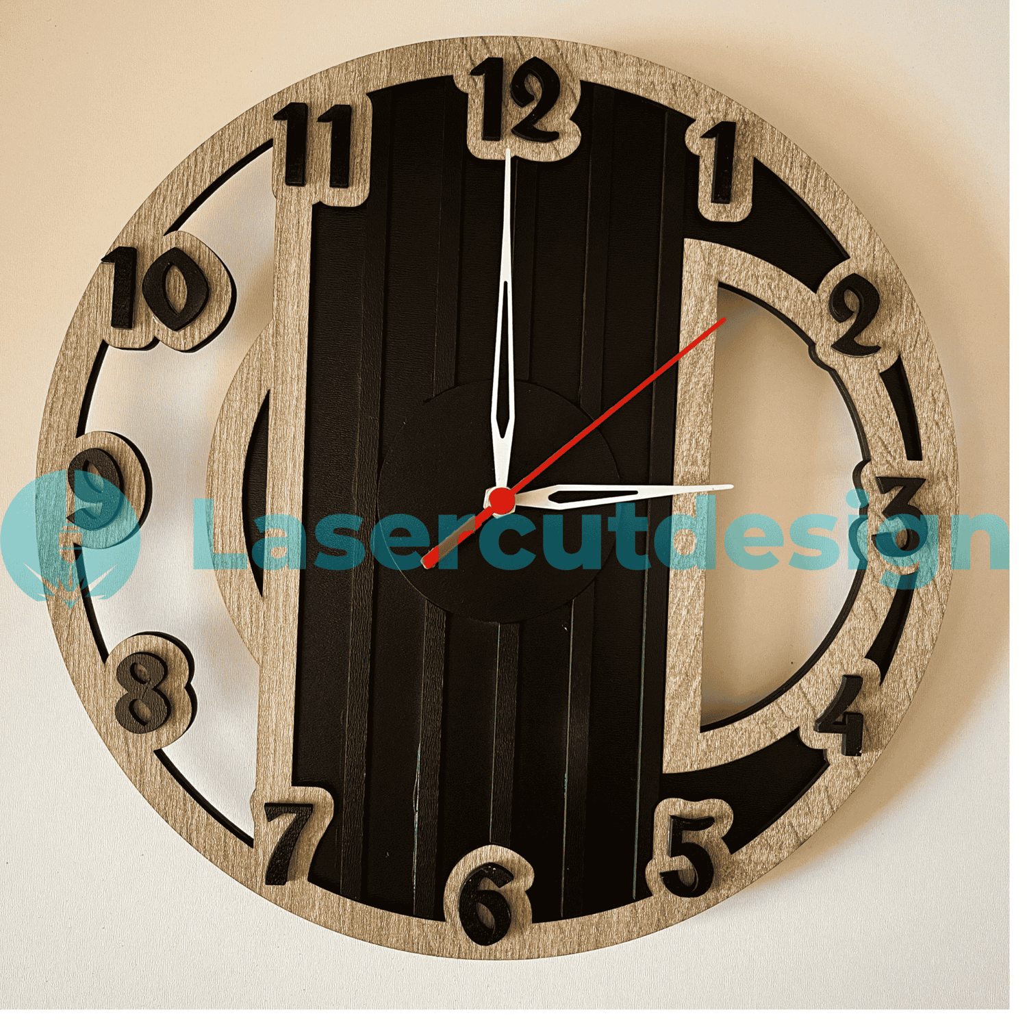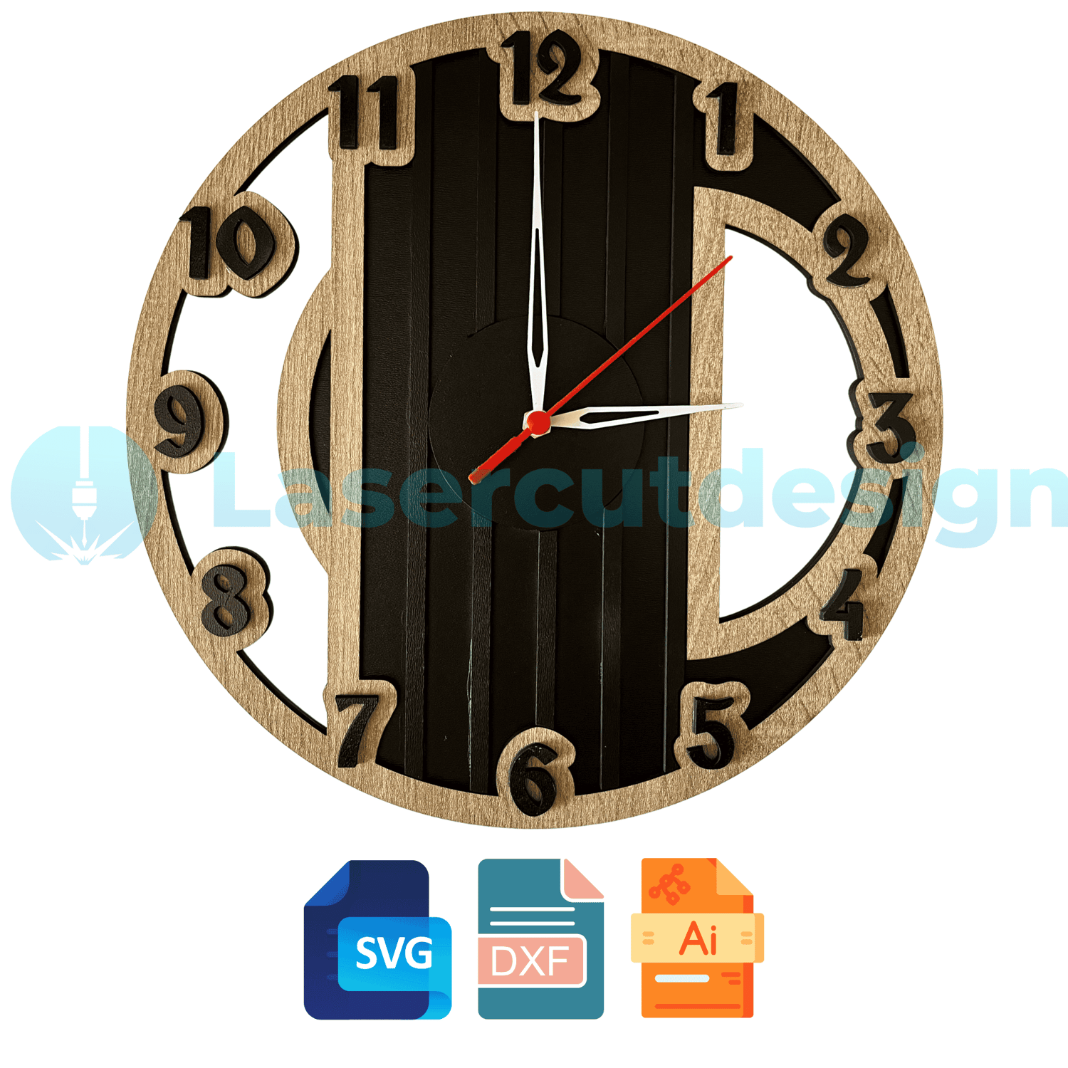Modern Wall Clock SVG – Laser Cut Wooden Clock Design | DXF, SVG, AI Files for CNC and Glowforge