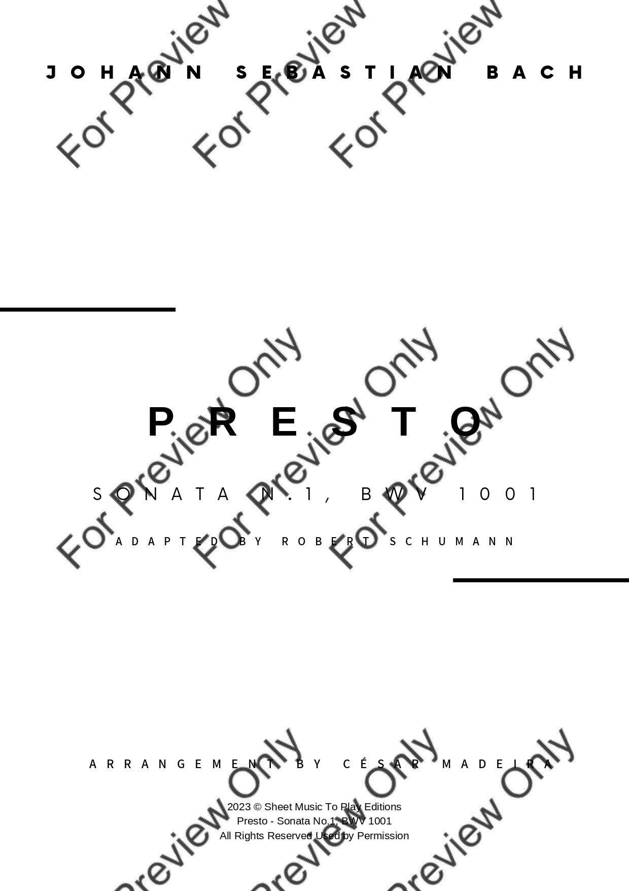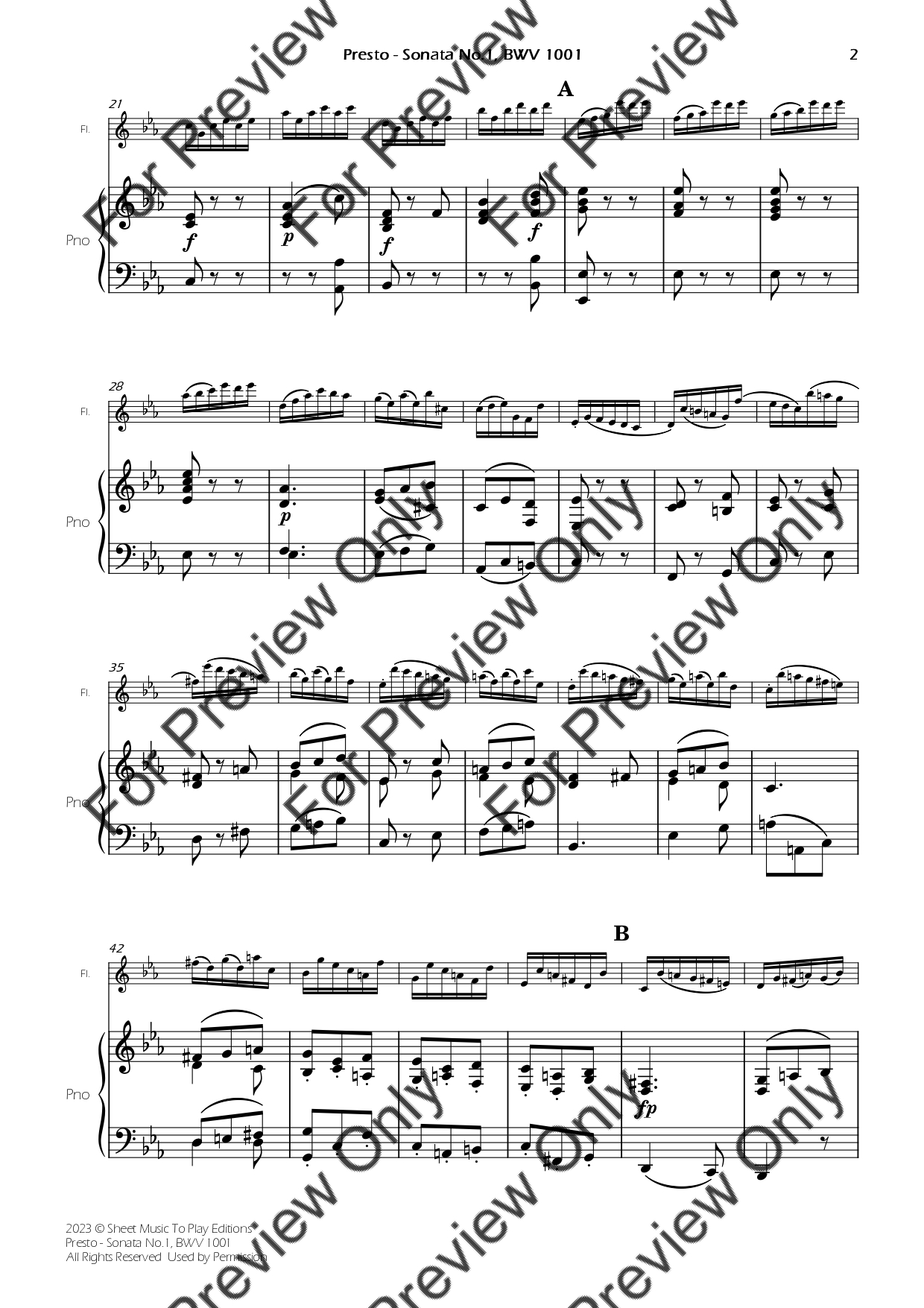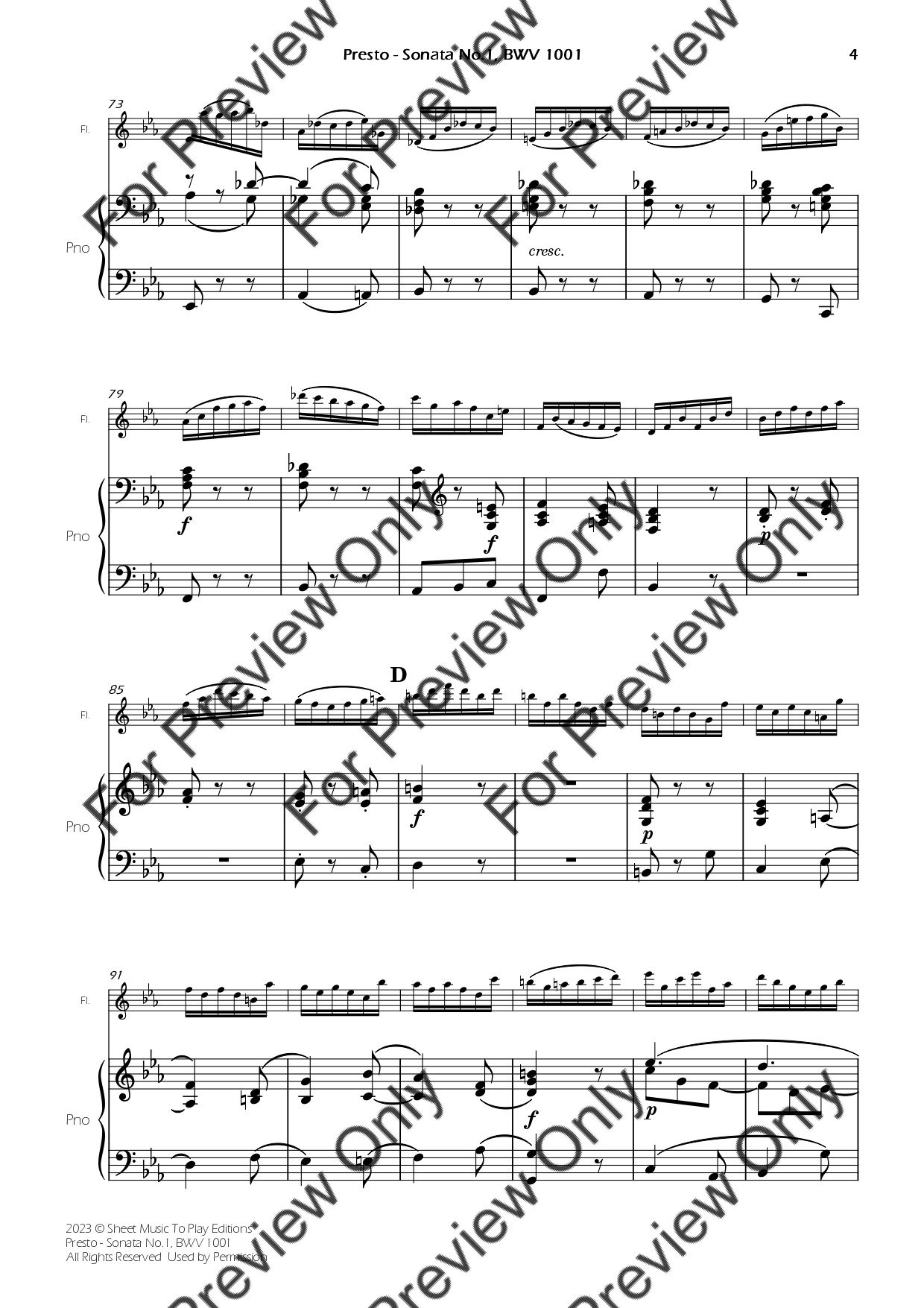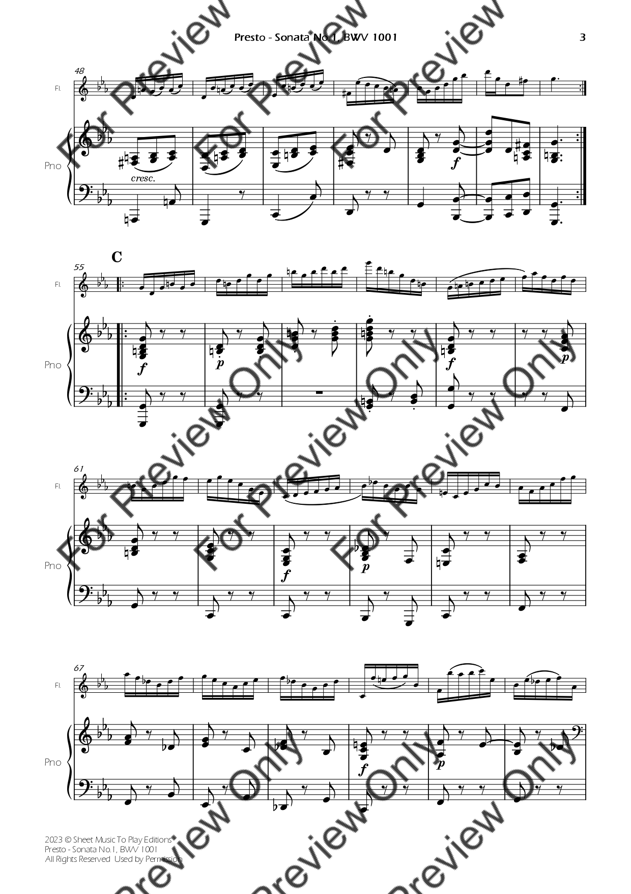 Presto from Sonata No.1, BWV 1001 by Johann Sebastian Bach. Arrangement for Flute and Piano. With Full Score and Individual Parts. Have fun!