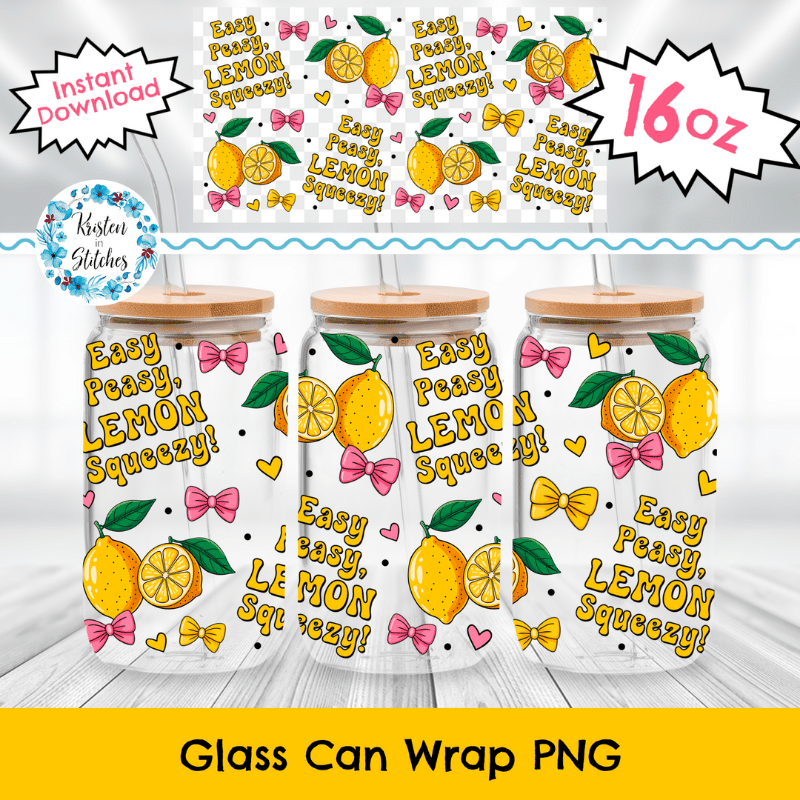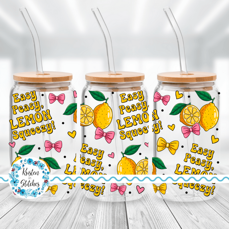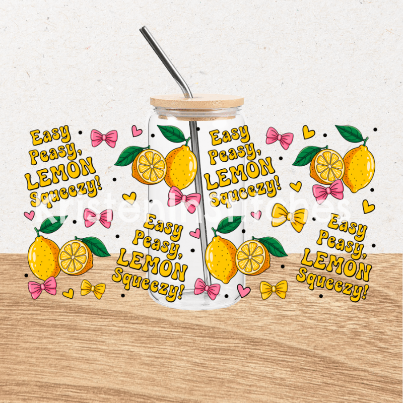 Easy Peasy Lemon Squeezy Glass Can Wrap Transparent PNG, Lemonade and Pink Bows