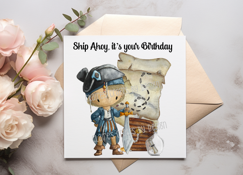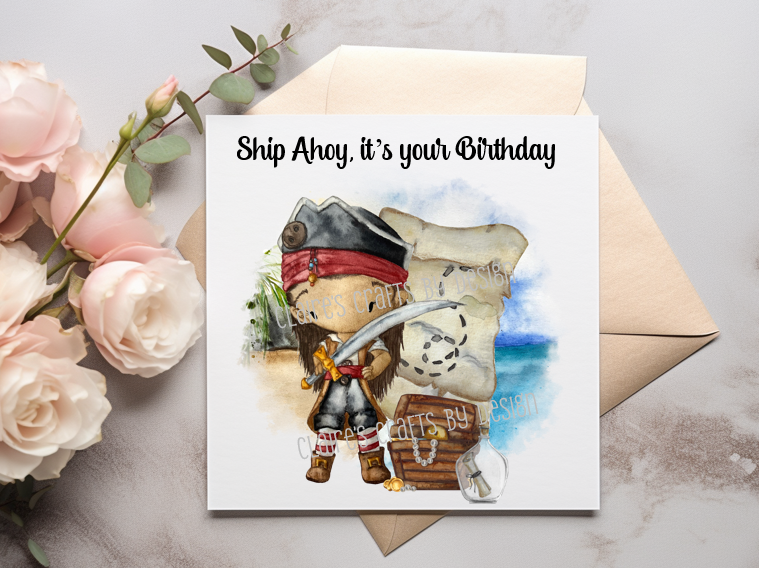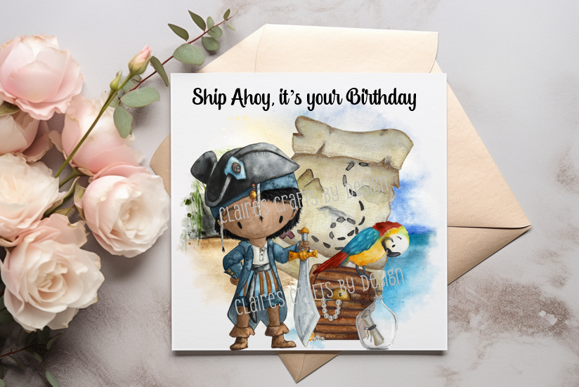 This cute pirate card is made just for you. It can be personalised for any occasion, the unique designs are designed upon order and therefore bespoke.