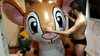 A little bit shy at first he finaly ride the chipmunk while he puncture it.