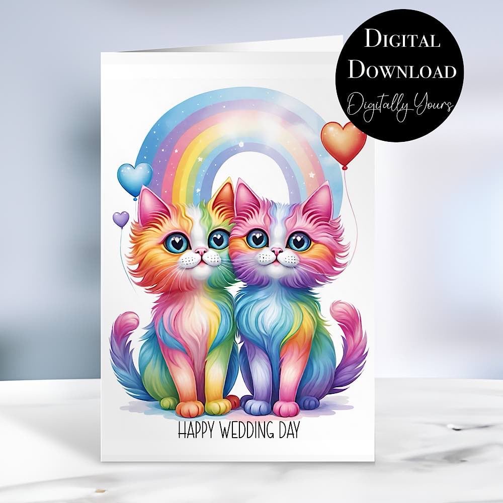 Wedding Day Rainbow Cats A5 Printable Card Front