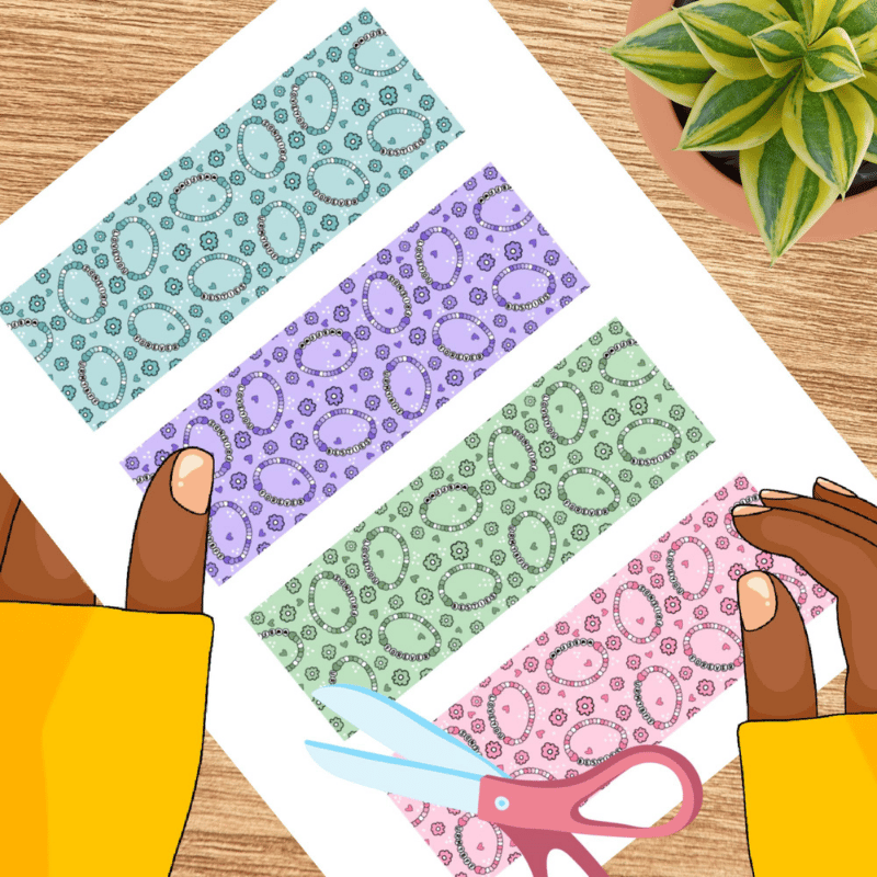 Friendship Bracelets Printable Bookmarks Sheet 2x6 Print and Cut PDF PNG Craft Prizes Activities