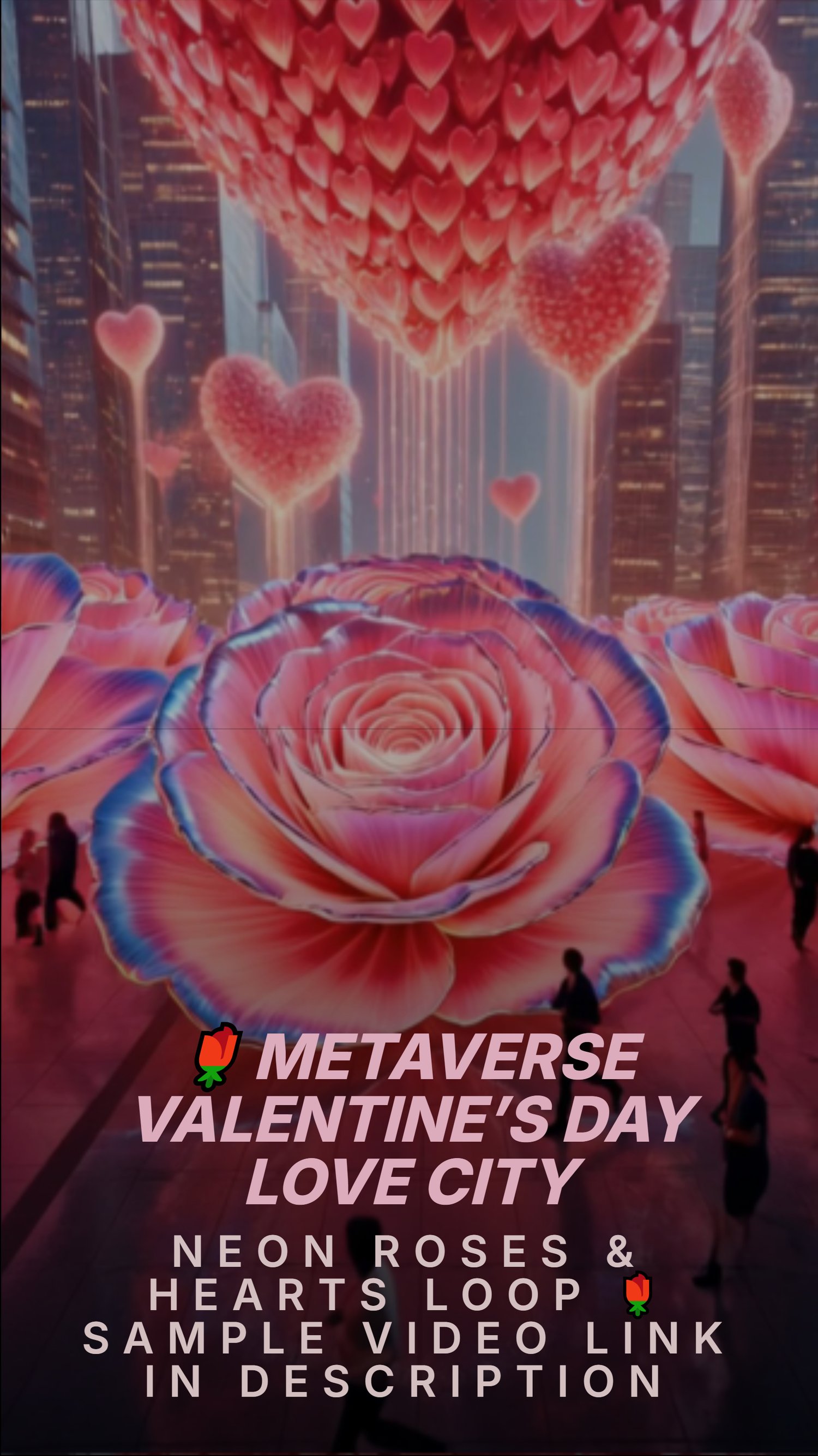 Lose yourself in this glowing metaverse: towering neon roses, floating hearts, cyberpunk city vibes. The ultimate romantic background for short-form video content!