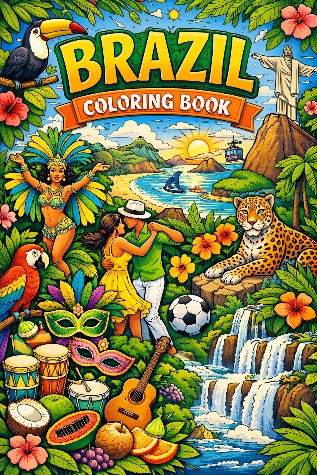 Brazil, coloring ebook, 72 designs, digital printable product, instantly download
