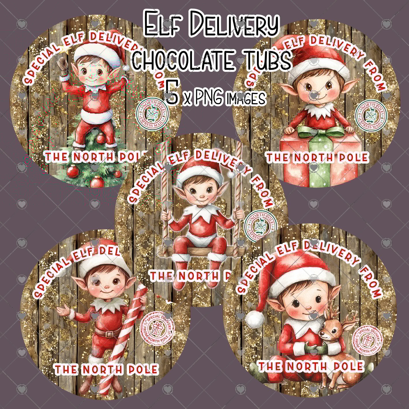5 x PNG images to fit the round shape chocolate tubs as can be seen in the mock up photos
