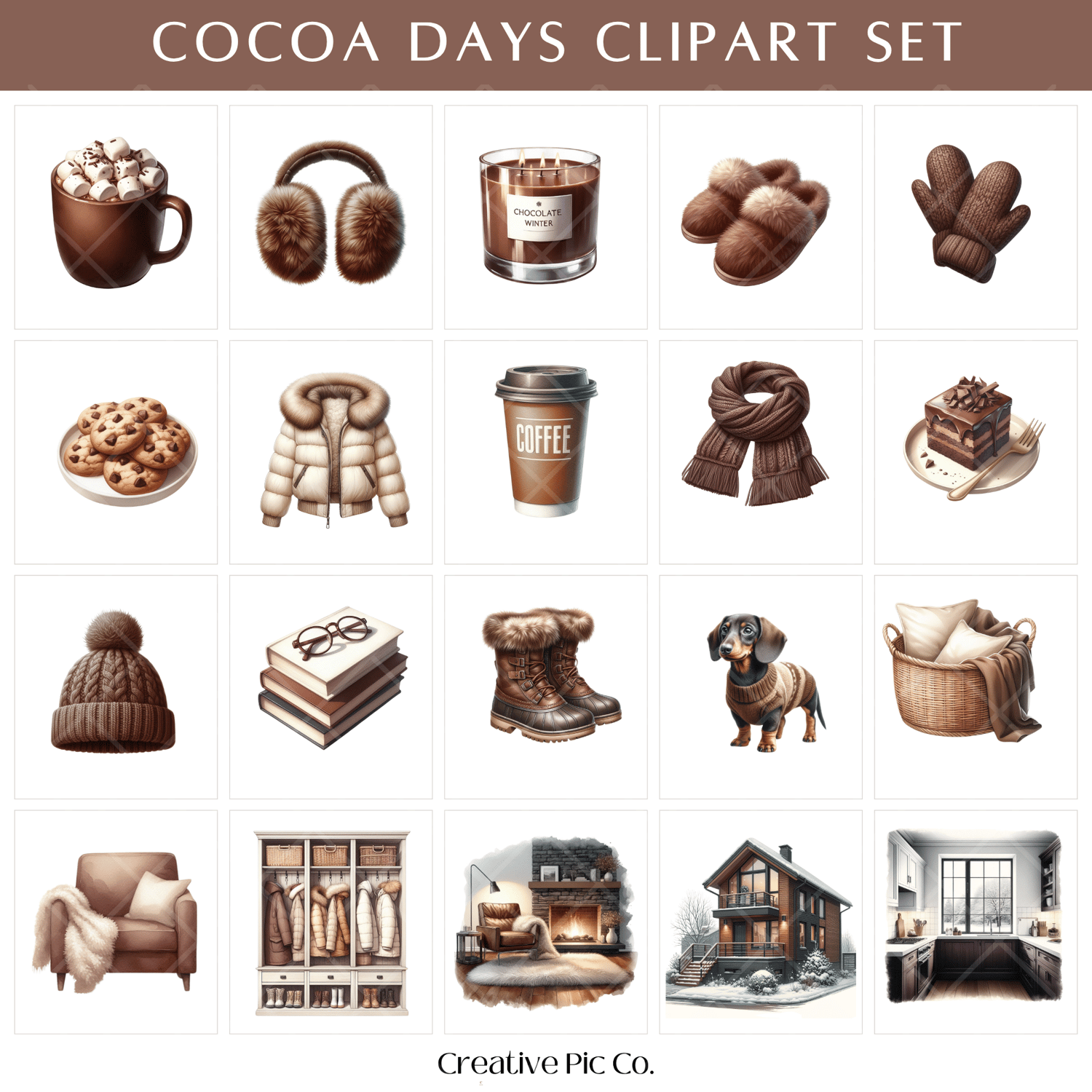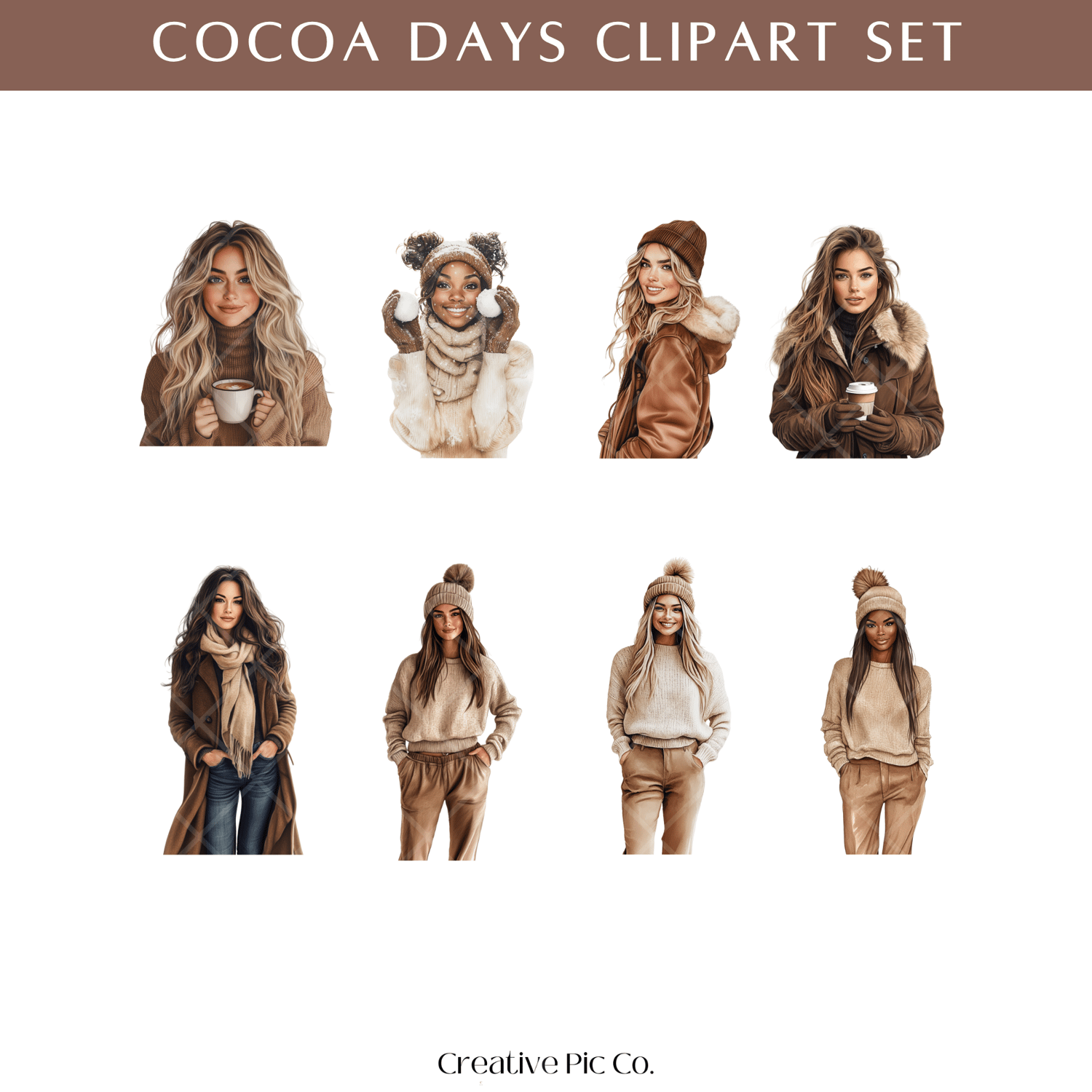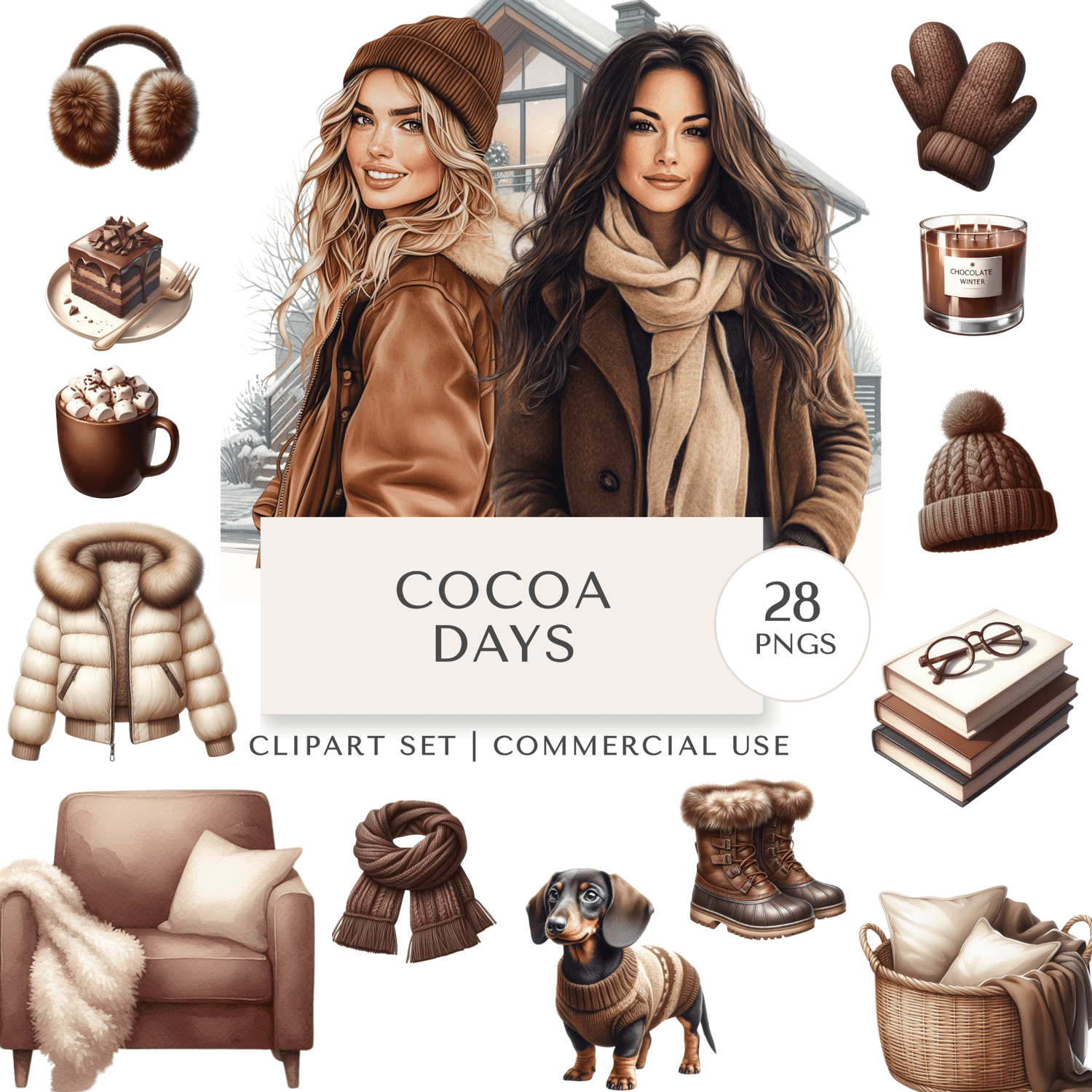 Wrap yourself in the warm and inviting charm of winter with the Cocoa Days Clipart Set. This collection blends fashion, comfort, and seasonal coziness in a palette of soft cocoa browns and warm neutrals. From stylish winter outfits and comfy home accents to mugs of hot chocolate and reading nooks, every element evokes the slow, peaceful magic of winter days. Perfect for planners, seasonal marketing, and cozy lifestyle branding.
