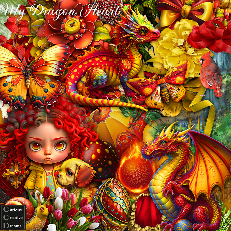 My Dragon Heart Is a Mini kit that includes 85 Elements, 6 Frames, 10 Papers . This Kit Included AI Elements. Personal Use ONLY