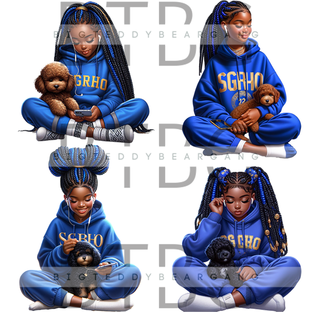 You will receive all 4 clipart images of a Young SGRho Girl in a Blue Hoodie. Clipart can be used in your sublimation projects, as digital and physical stickers, journal and planner covers, etc.