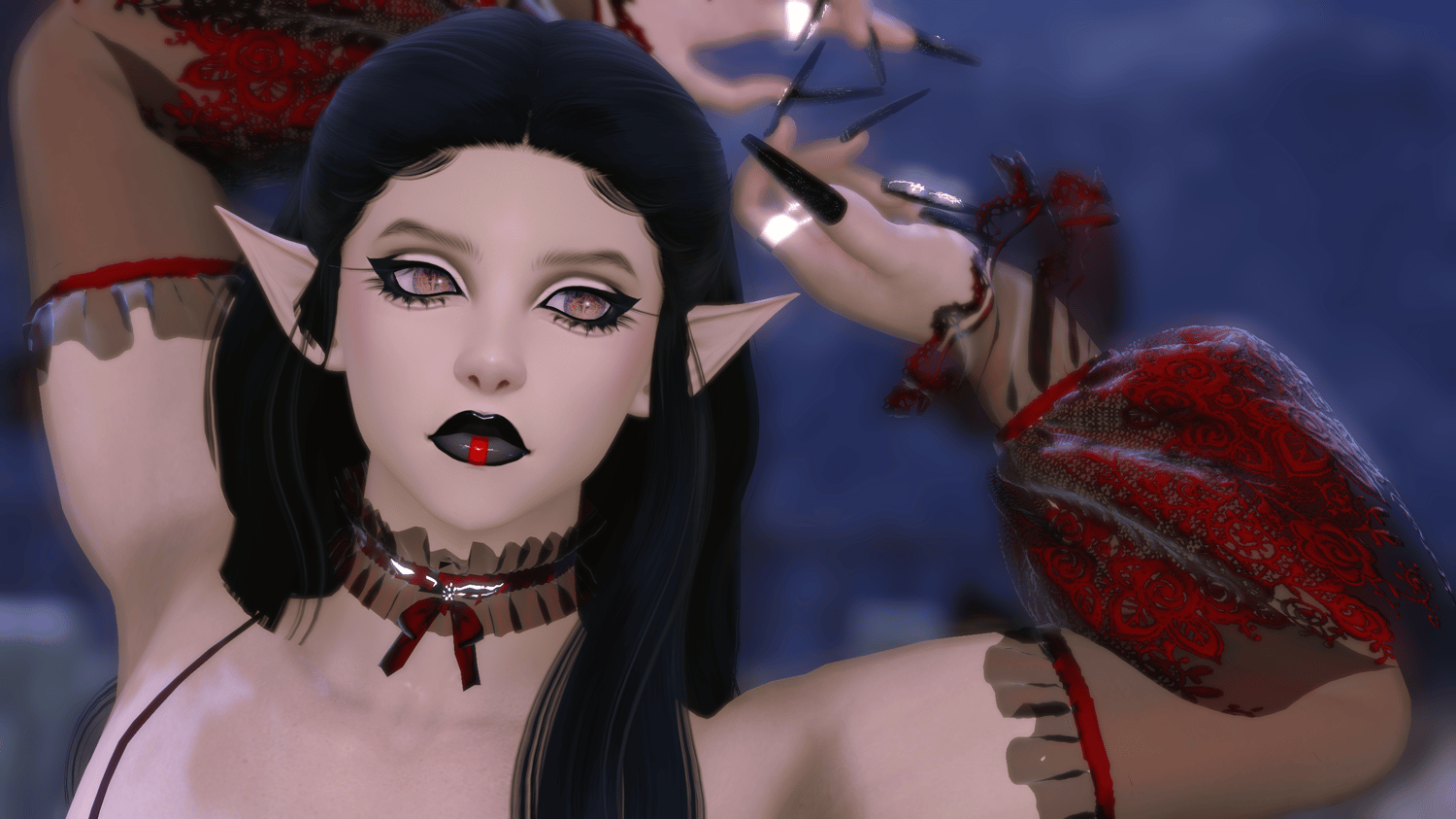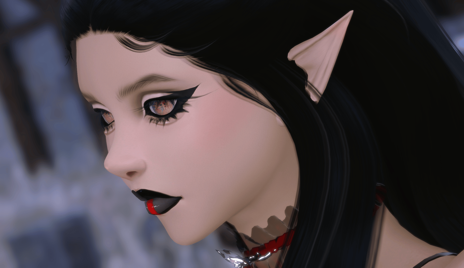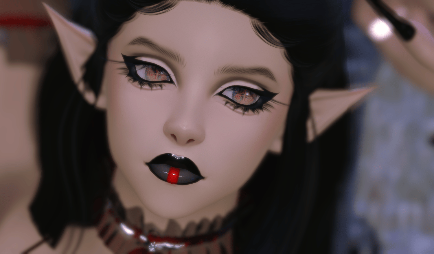 Eclipse makeup for Sepha's Somnia sculpt for all Aura faces! Kind of a darker vibe with this one. Her lips are very shiny in different lights.