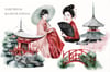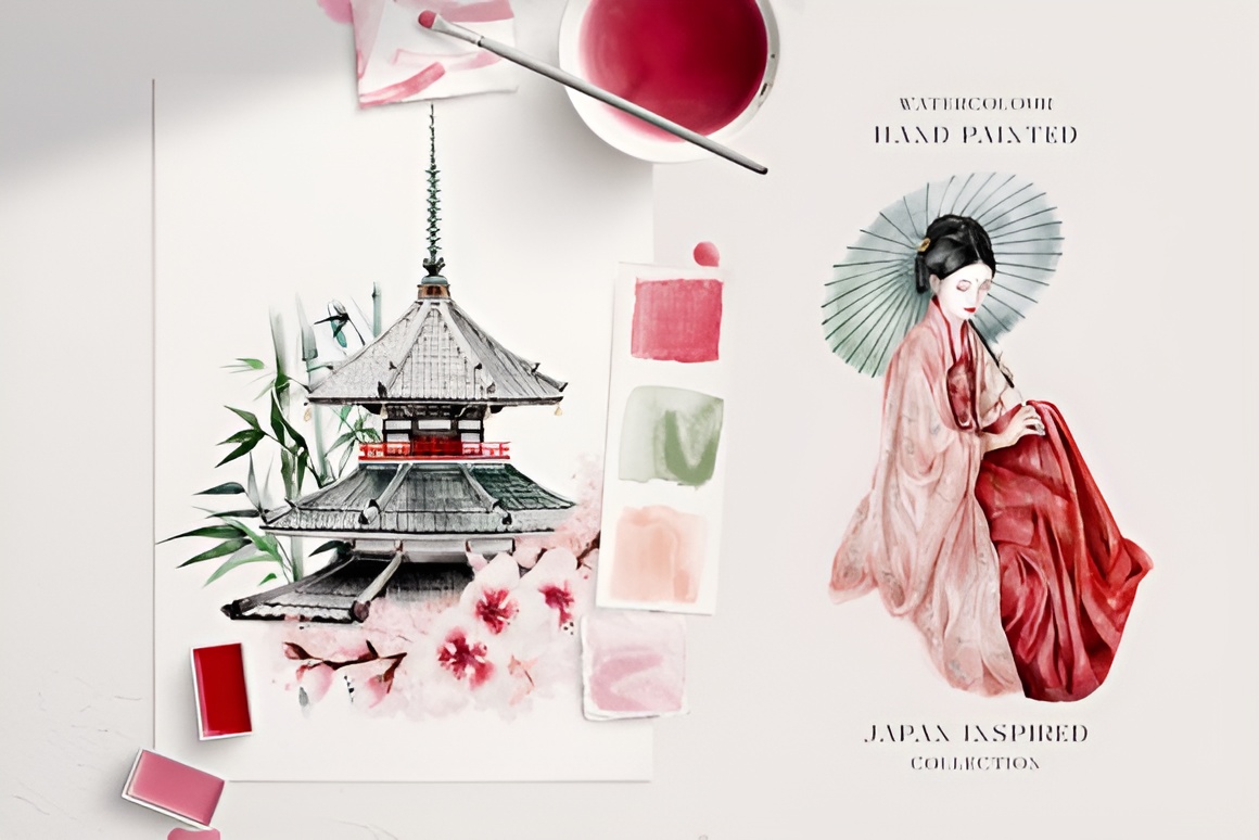 Japanese Watercolour Collection – 43 Illustrations, Seamless Patterns, Posters & Bonus Design Elements