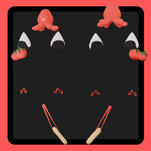 🍱Squid Hot Dog, Onigiri Horns, Tomatoes, Ketchup Face Swirls, Chop Sticks and Tamagoyaki Included