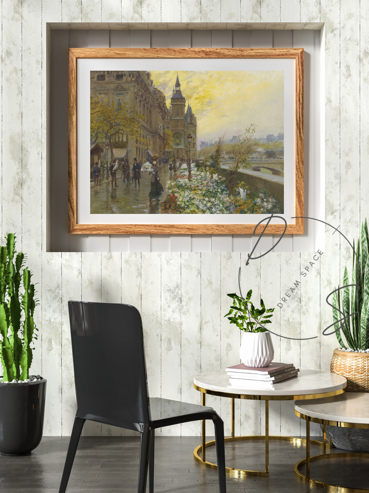 This is DIGITAL PRINTABLE PRODUCT | Instantly download and print this The Flower Market Painting by Georges Stein. Original artwork 1890.
