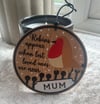 Robin on metal railings, with blank street sign to add a name, with the quote "Robins appear when lost loved ones are near", includes the names Nanny, Pops, Mum, Dad, Grandad, Grandma, Nana. You will receive the circle and lantern versions