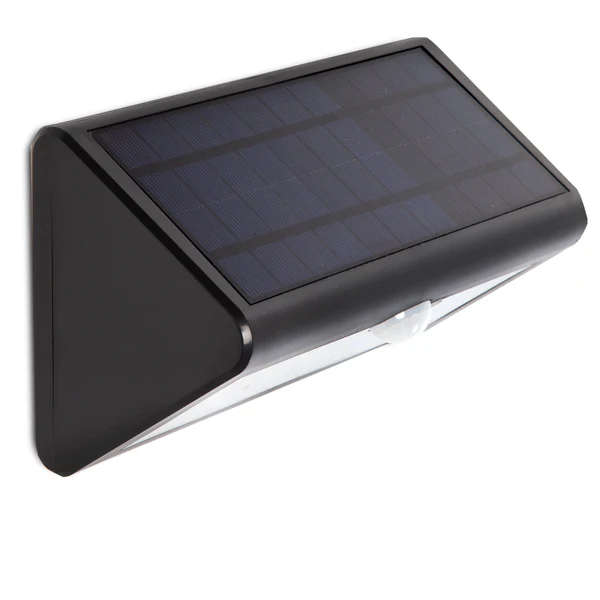 The solar LED wall light with PIR sensor remains off and automatically activates when a heat source moves in front of the switch within range (approximately 3 to 5 meters). This helps extend its lifespan and results in greater energy savings.