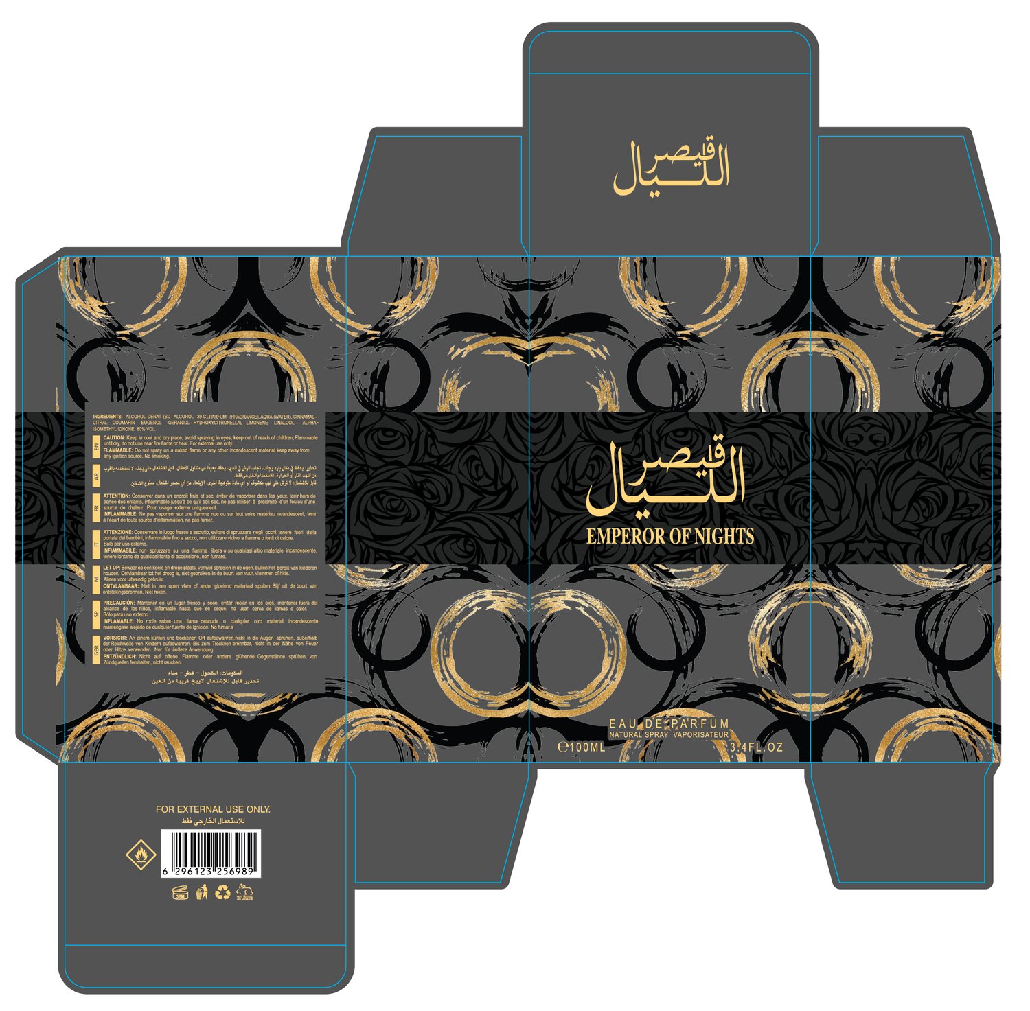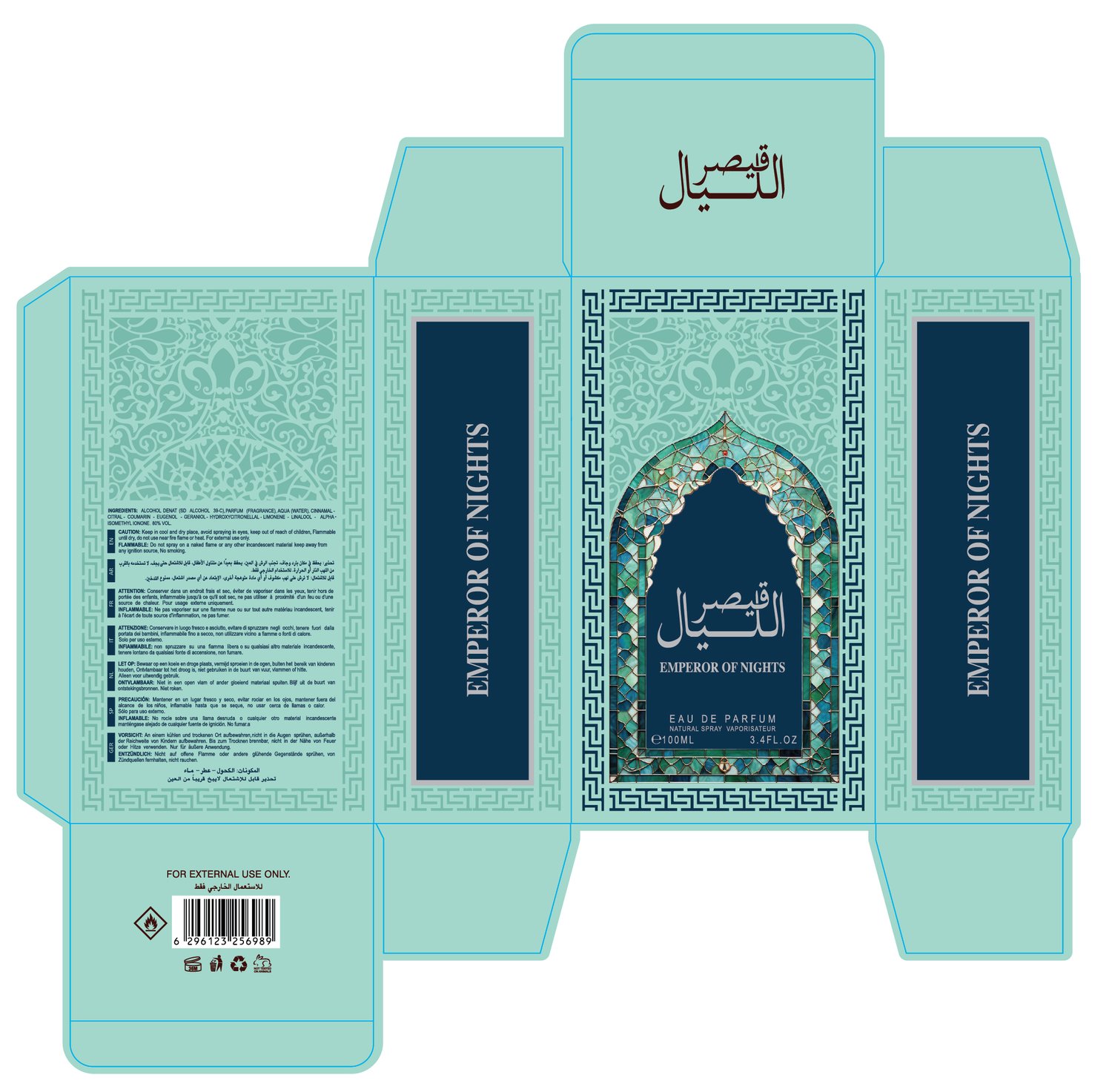 Pack of 5 Arabic Perfume Packaging Box Design Template