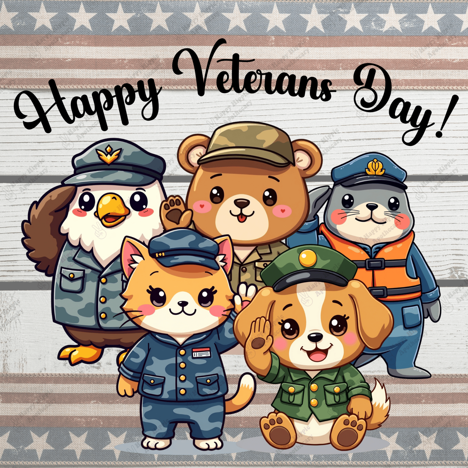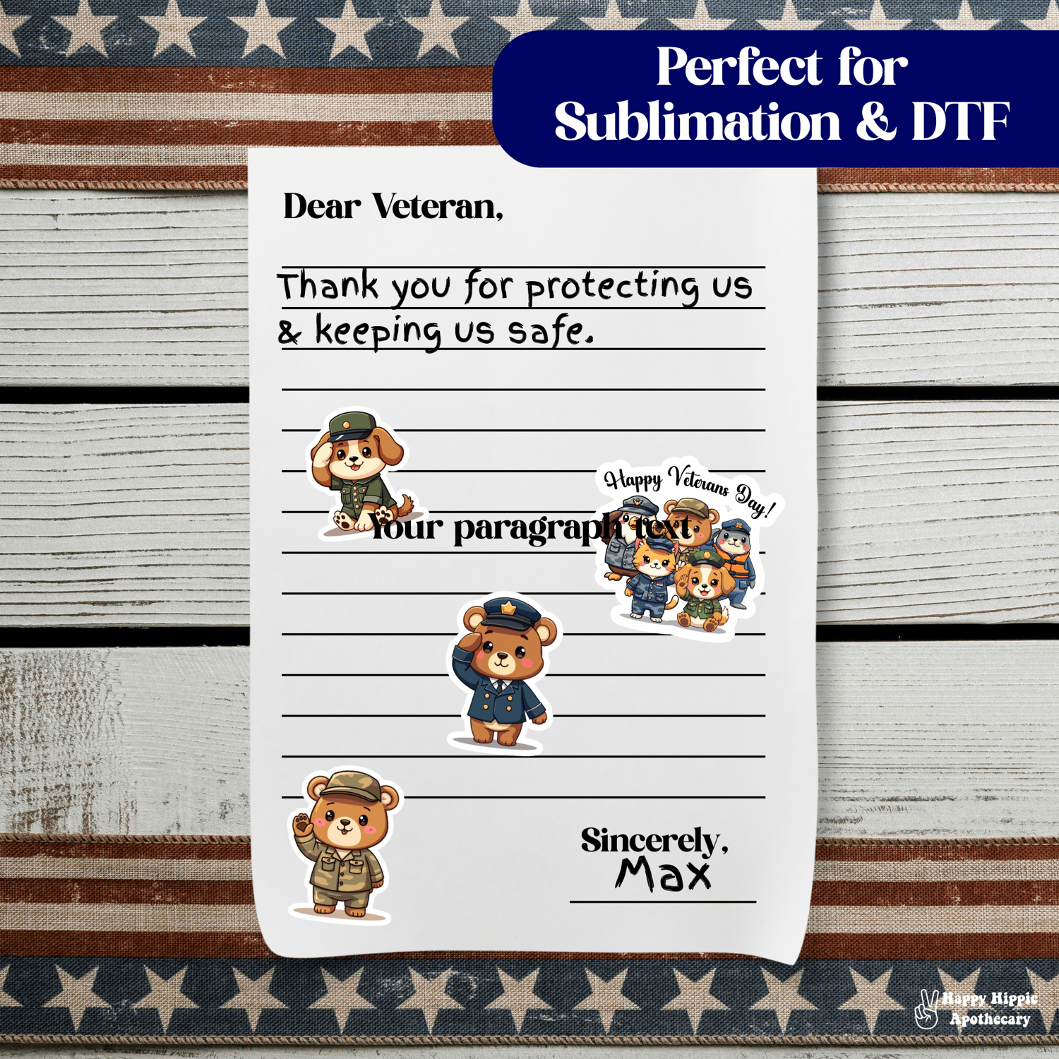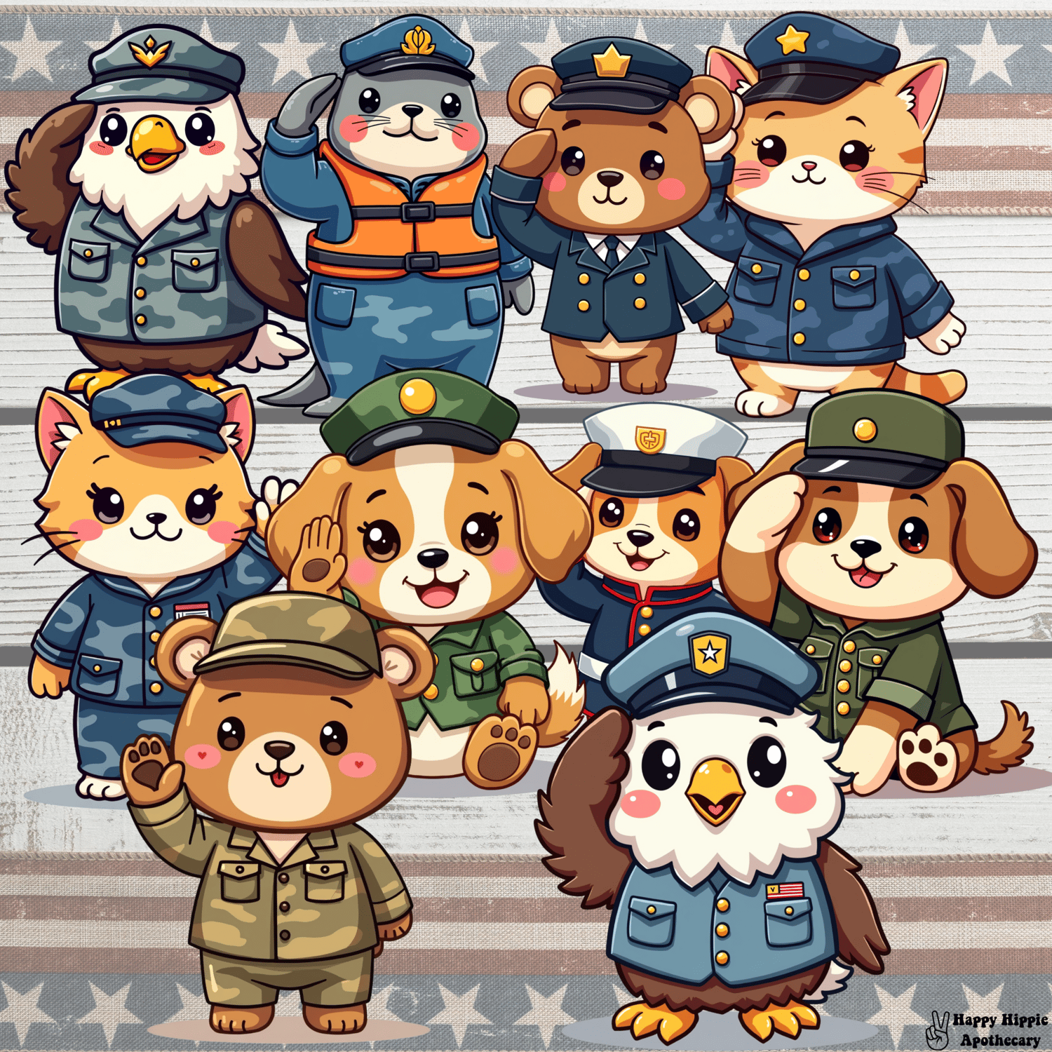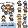 Veterans Day Clipart Bundle | Kawaii Military Animals PNG Set | Patriotic Sublimation Graphics for Crafts & DIY