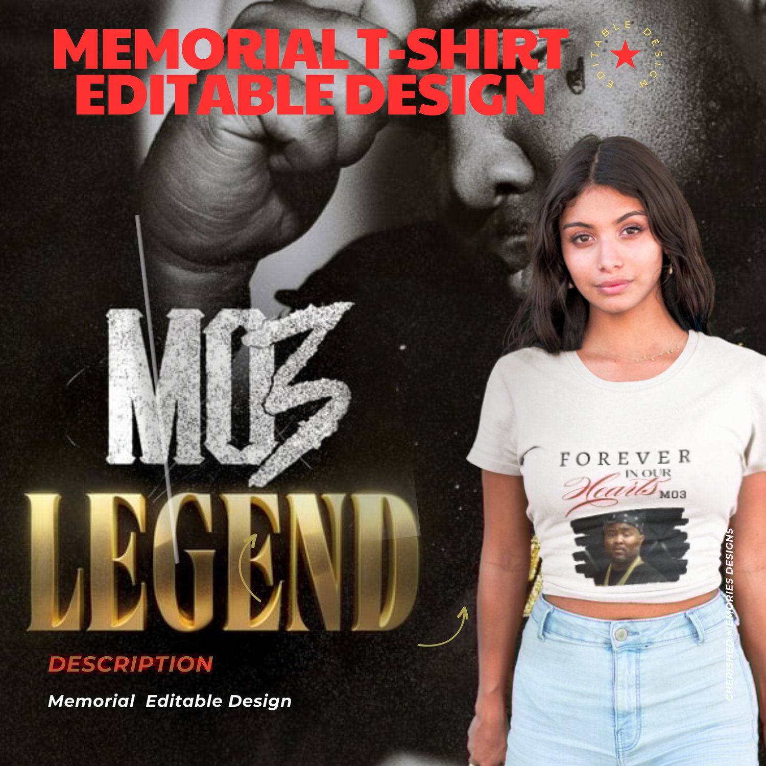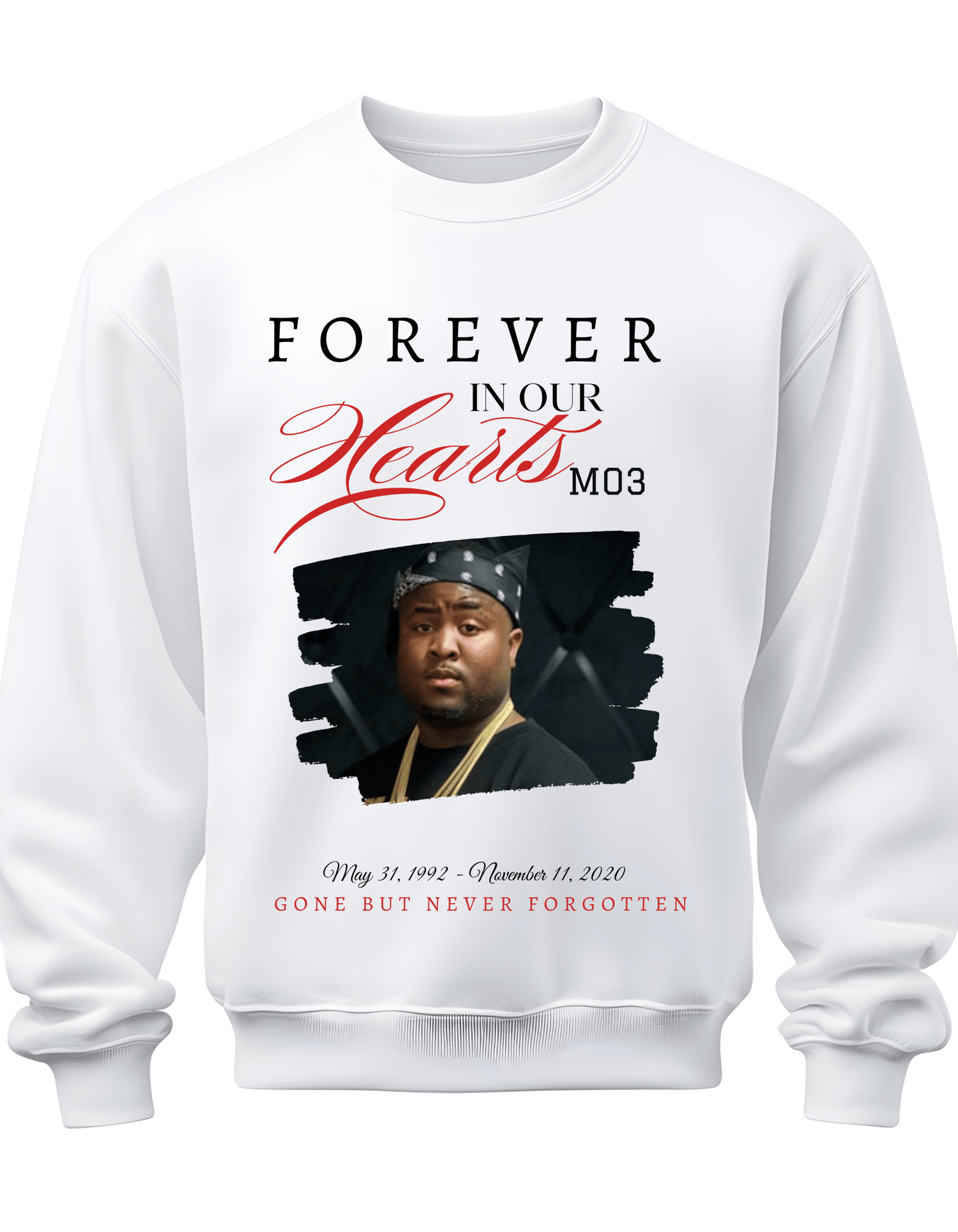 Editable Memorial T-Shirt & Sweatshirt Template | Forever In Our Hearts RIP Design
