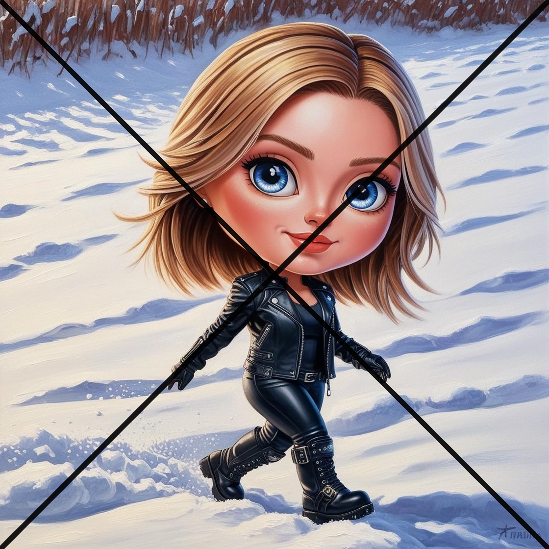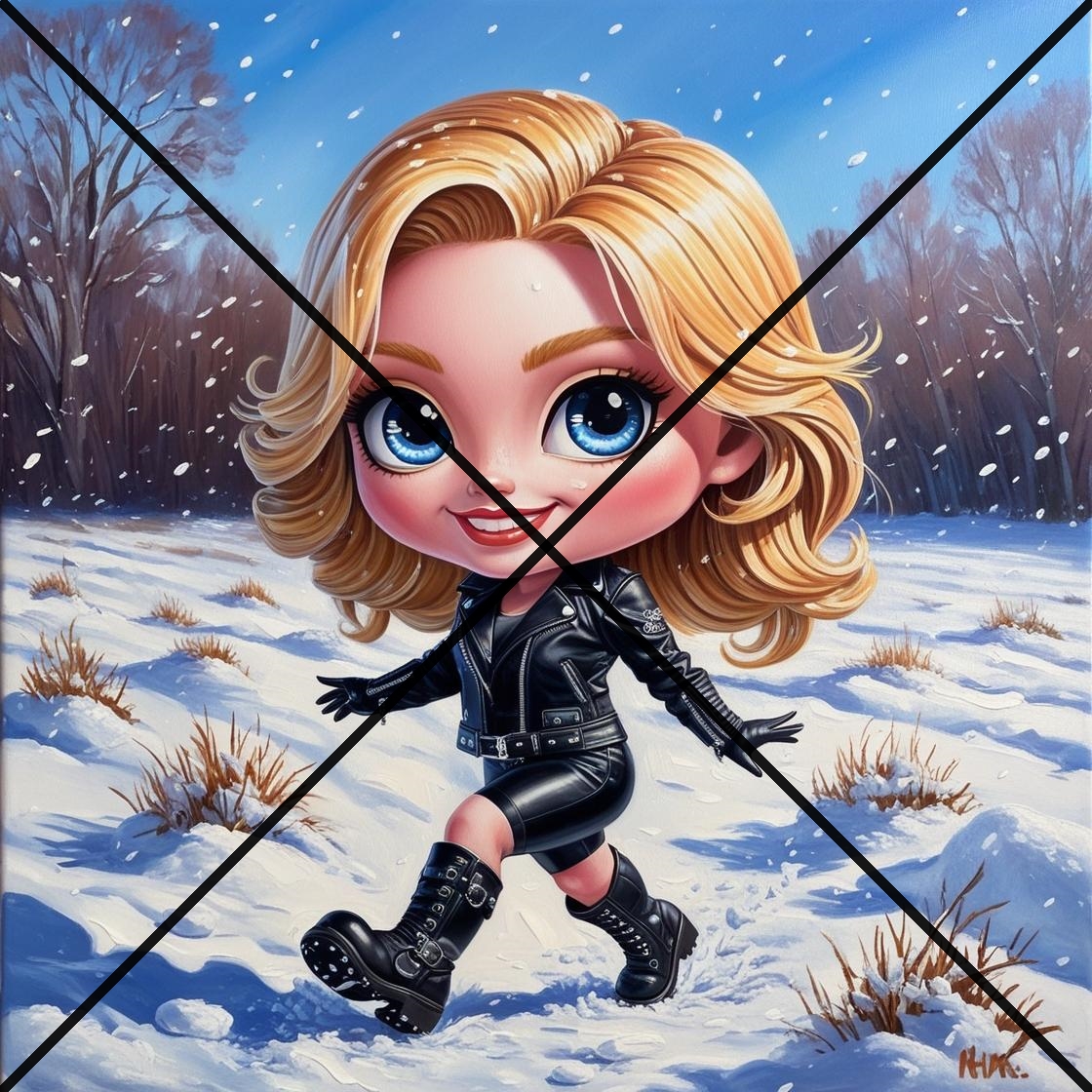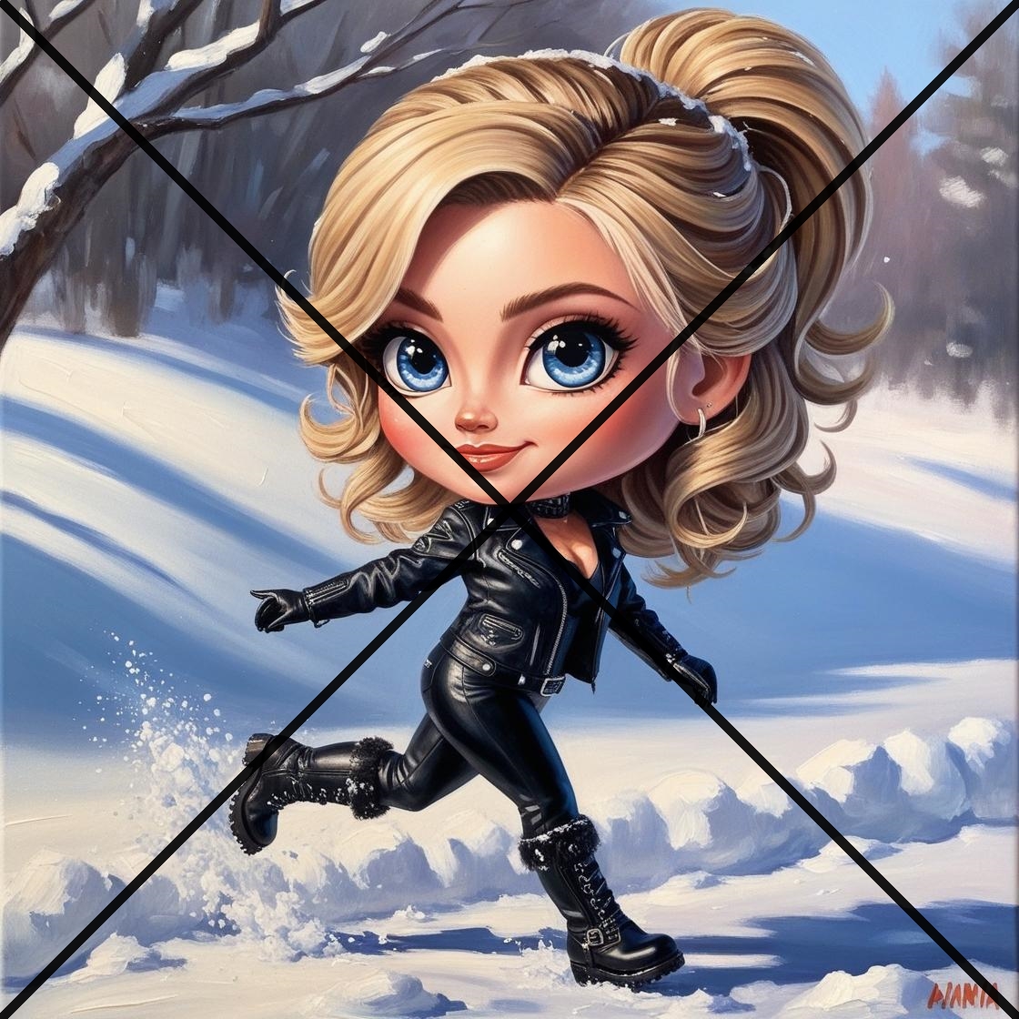 Blondie Biker Chick Walking in the Snow 4 Different Images
