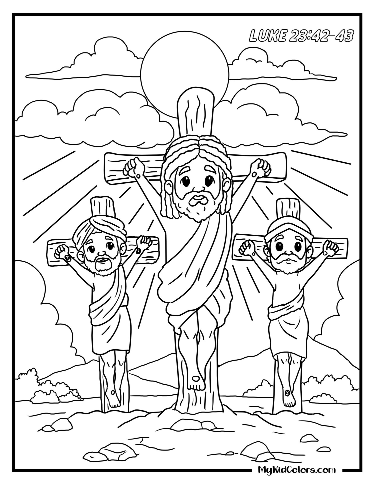FREE Hand-Drawn Inclusive Jesus Died on the Cross Coloring Pages for Kids