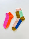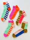 The Halfsies Socks Light pattern is the fingering weight version of the Halfsies Socks. These fun and deceptively simple socks are all about color play! They are worked flat using very simple intarsia and then sewn together. Don't worry if you've never worked intarsia or sewn socks before - I have video tutorials to walk you through it!