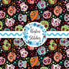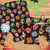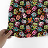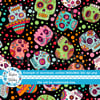 Colorful sugar skulls on black.