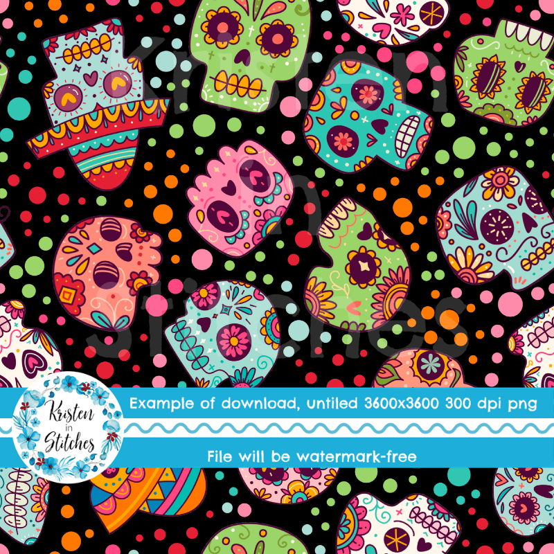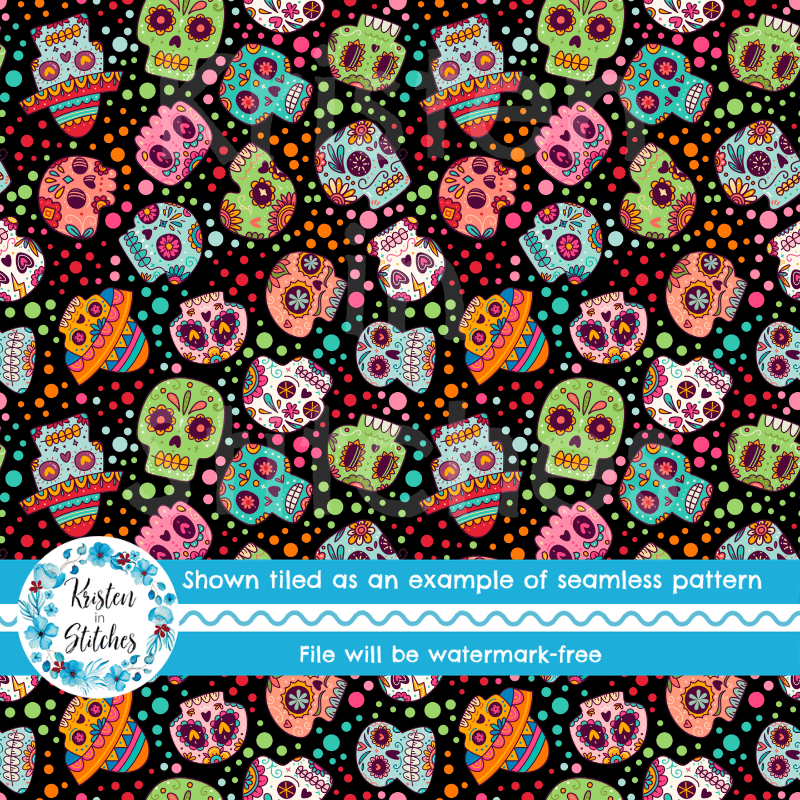 Sugar Skulls Seamless Pattern, Dia De Los Muertos, Day of the Dead