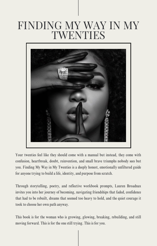 Through storytelling, poetry, and reflective workbook prompts, Lauren Broadnax invites you into her journey of becoming, navigating friendships that faded, confidence that had to be rebuilt, dreams that seemed too heavy to hold, and the quiet courage it took to choose her own path anyway.