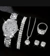 Women Gifting set Wrist Watch with Jewellery Earing Necklace Ring Bracelet