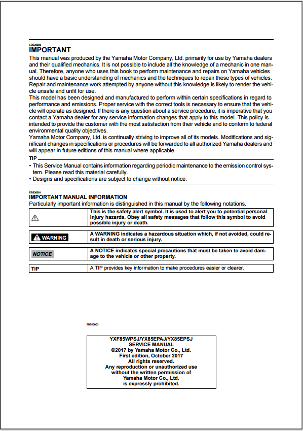 2018 Yamaha Wolverine X4 Service Manual Part No. LIT-11616-31-40
