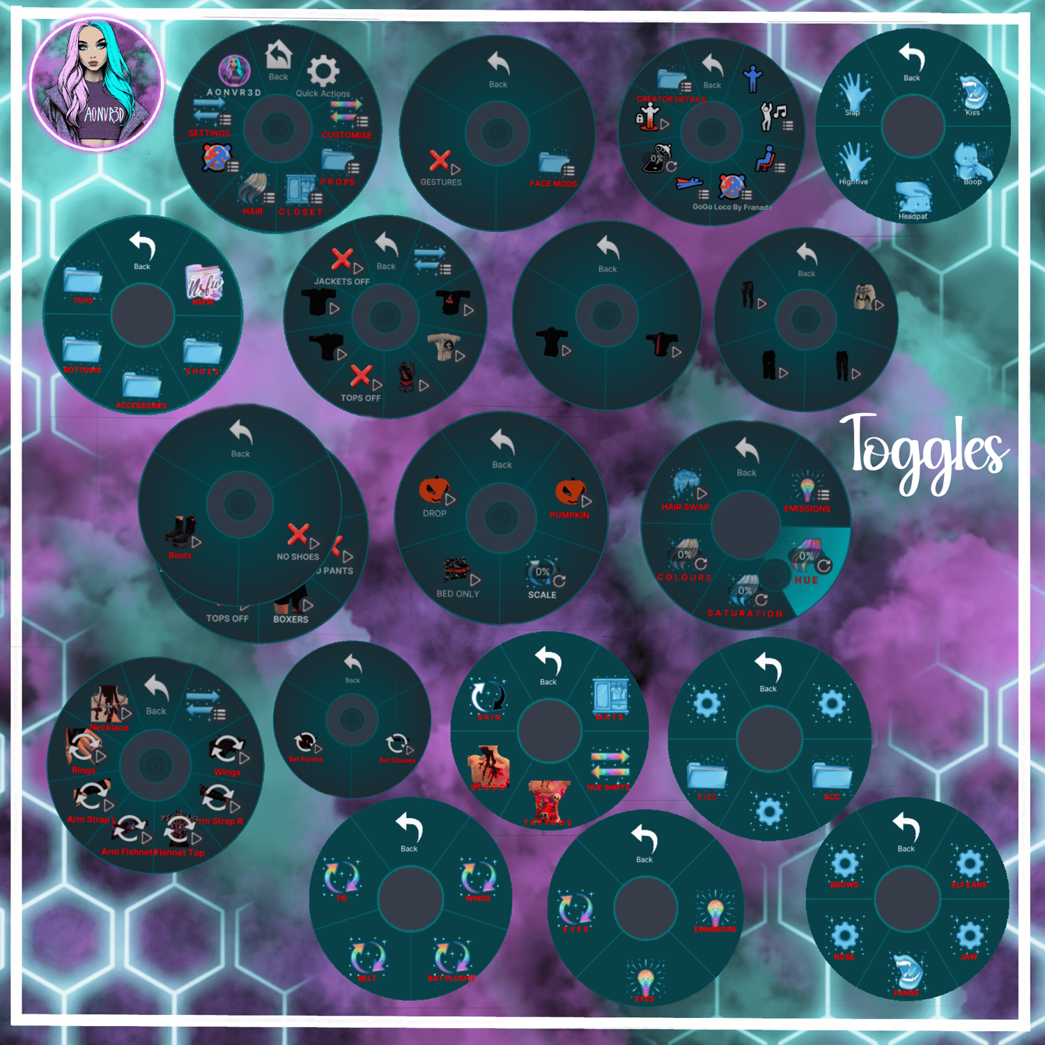 - 4 facial expressions -Gestures on/off - sleep toggle - Face modification toggles - Boop, Head pat, slap, kiss and high-five contacts,