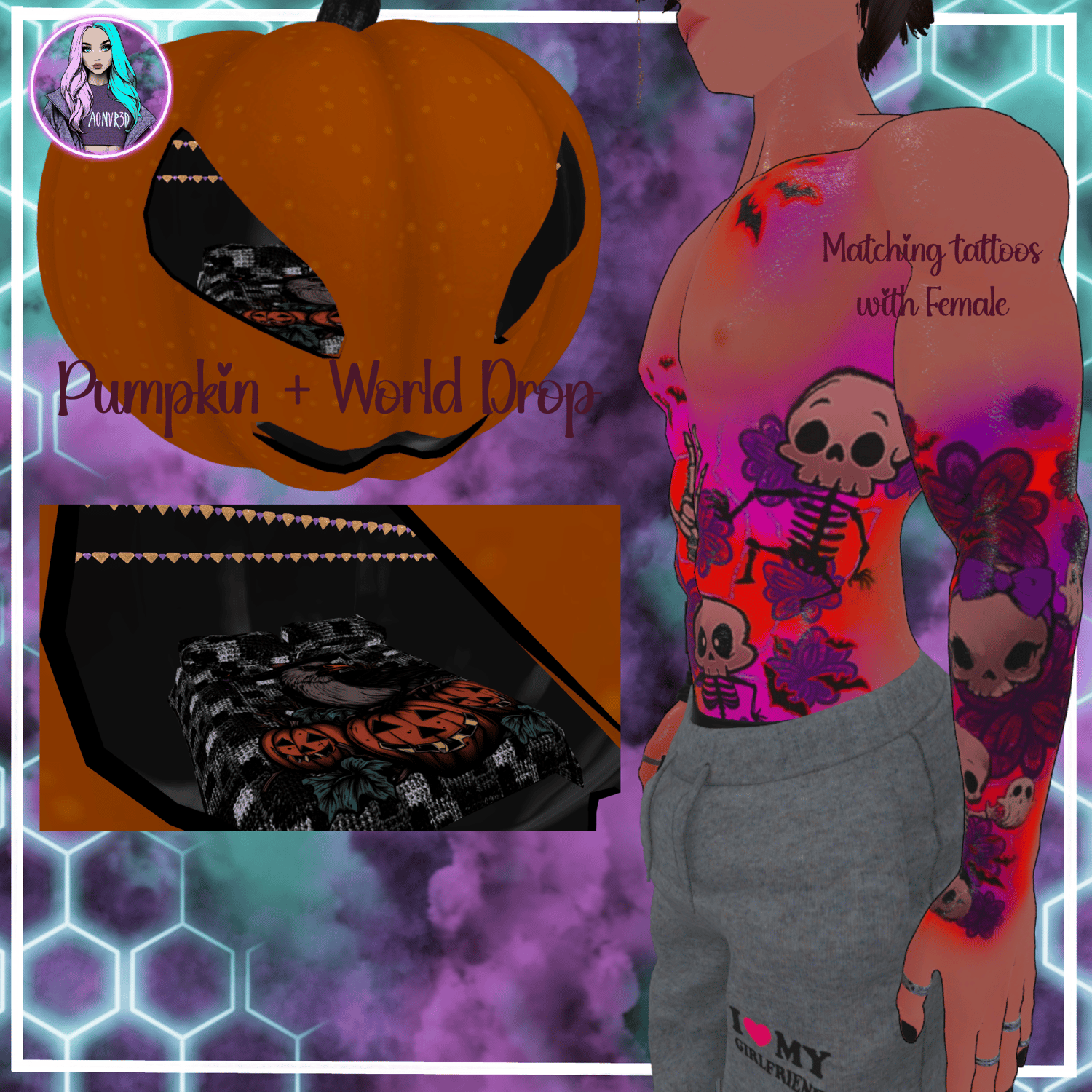 - Cozy Pumpkin with lights + Bed > World Drop and scale toggles