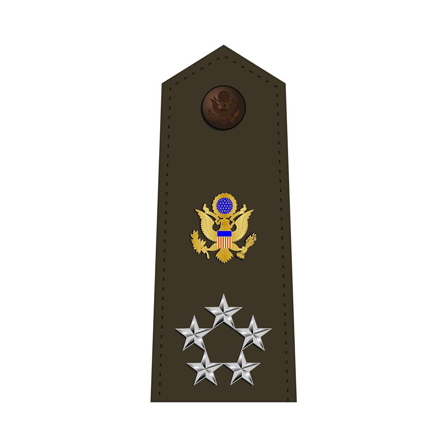 commissioned rank emblem, specifically the highest rank, General of the Army (GA), recognized by the United States Department of Defense (US DoD) pay grade system.