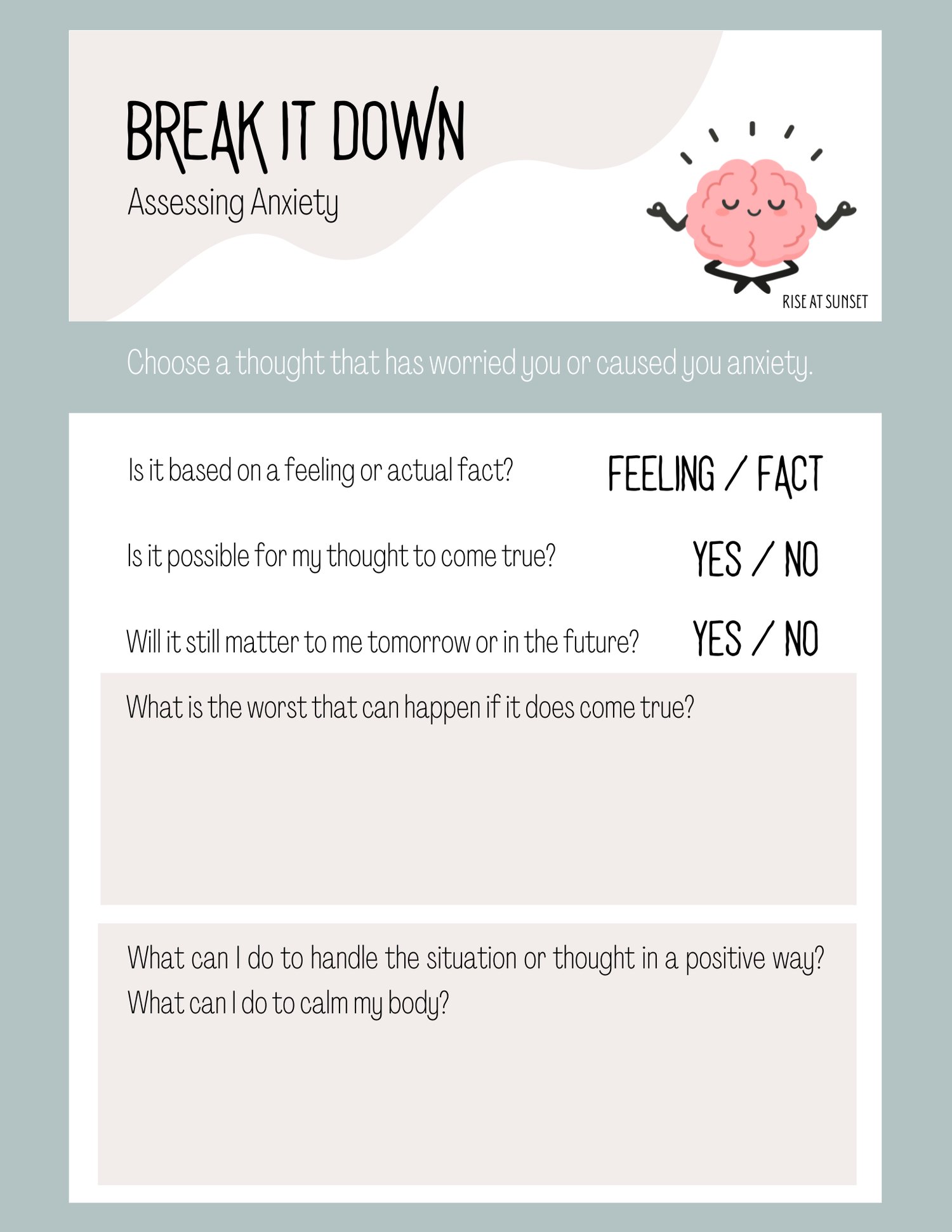Break it Down Anxiety Worksheet
