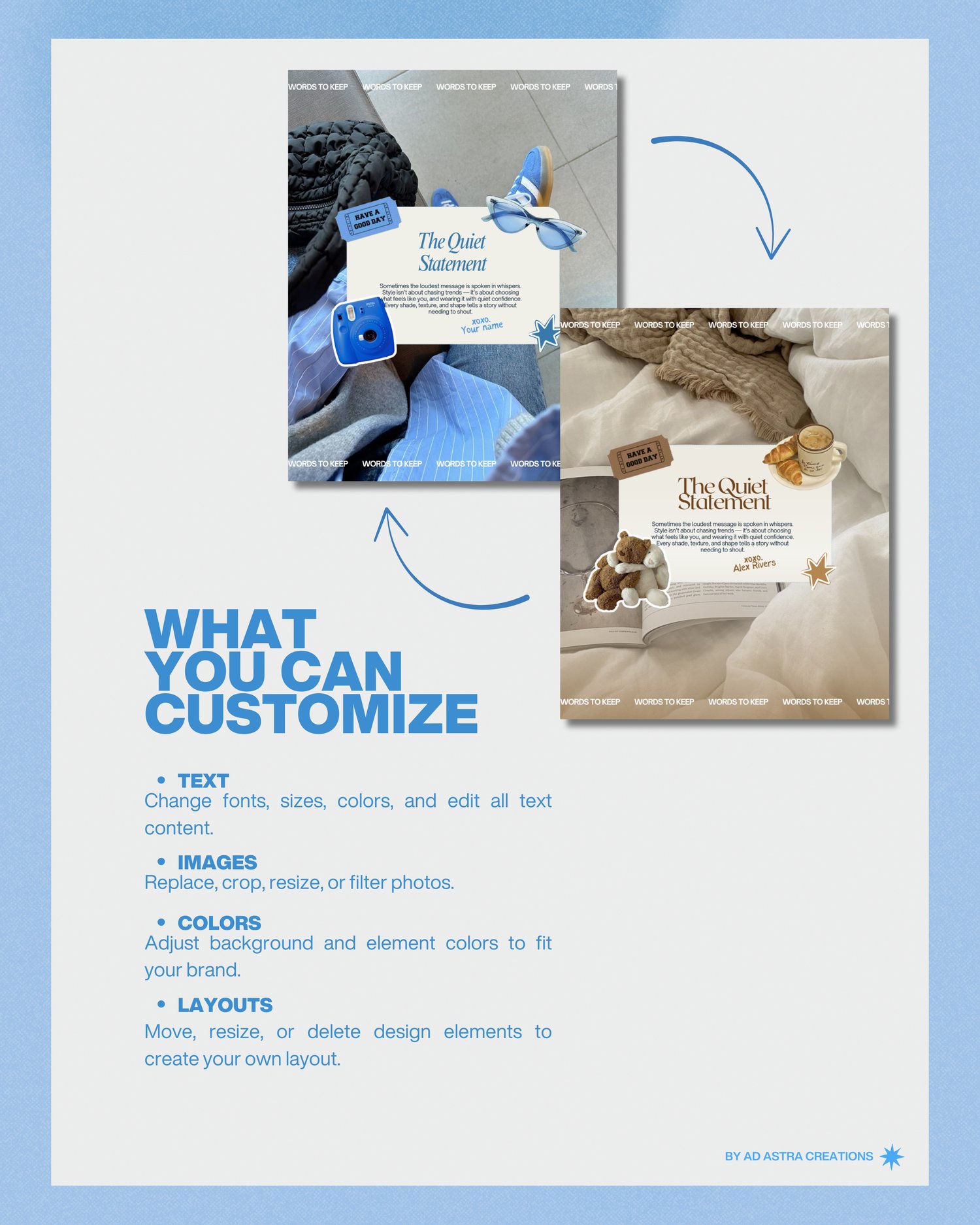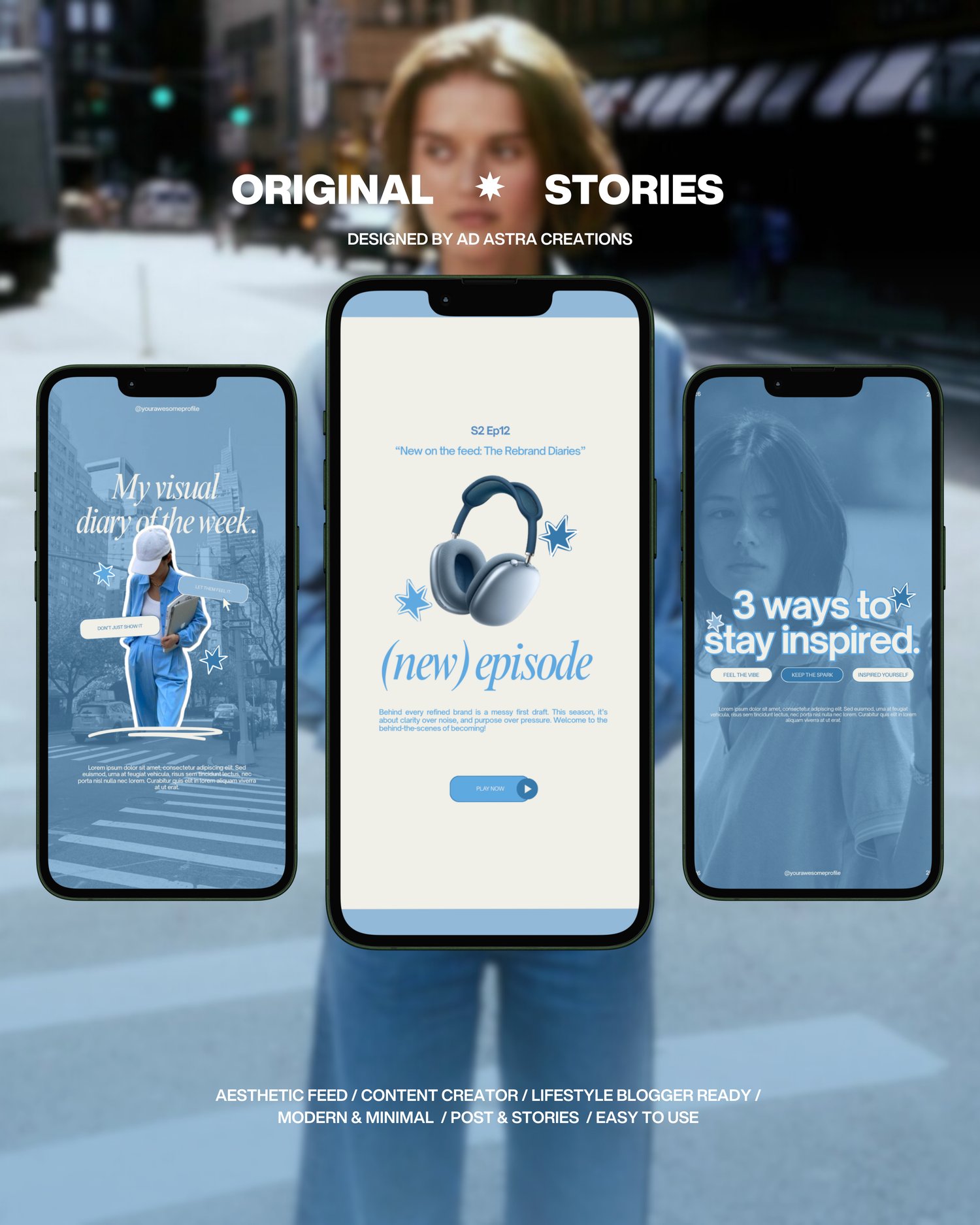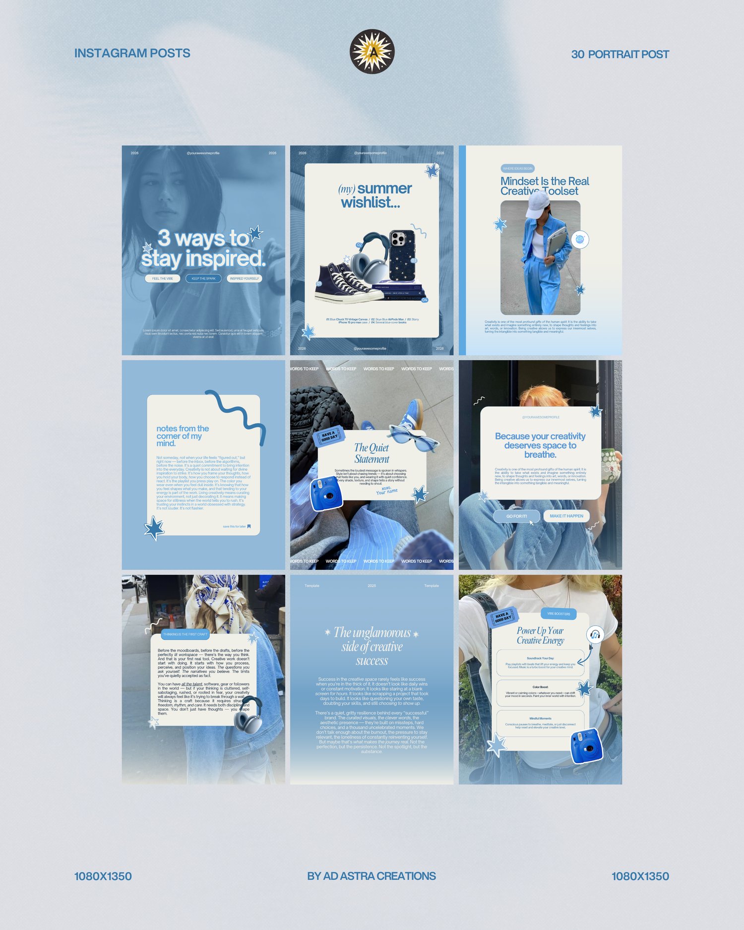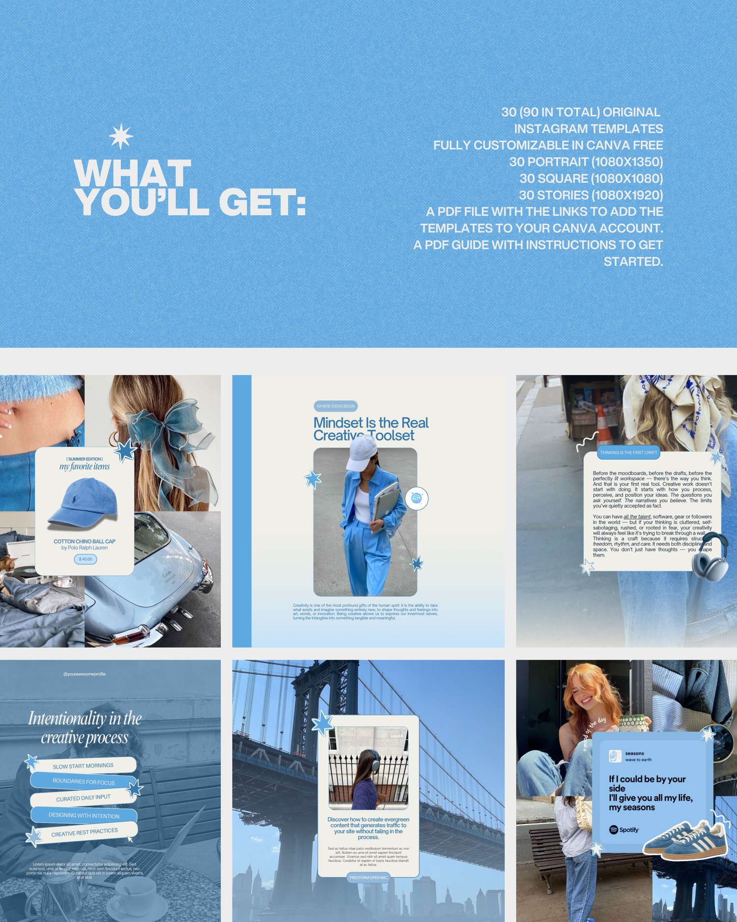 ⋆Polished Minimalism: Clean layouts and soft sky-blue tones elevate your content with editorial elegance.