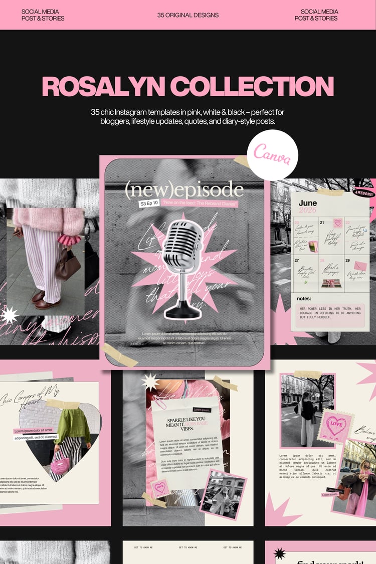 A modern collection of 90 versatile Instagram templates, ideal for bloggers, creatives, and anyone looking for a stylish, fresh feed. Multi-use layouts perfect for sharing podcast highlights, book recommendations, personal thoughts, favorite quotes, or daily inspirations.