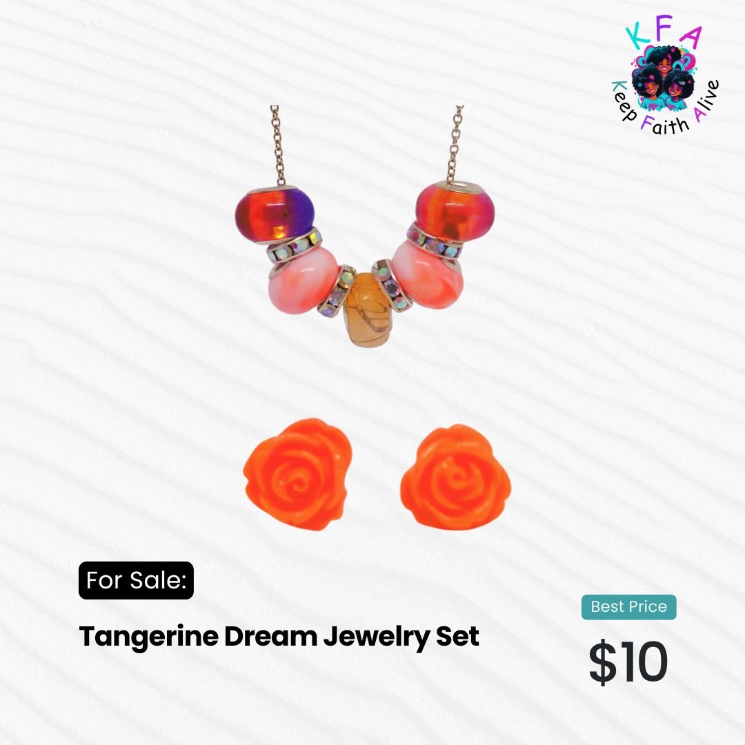 If you're looking for a modern and trendy option, consider a necklace and earring set made of orange resin or acrylic.