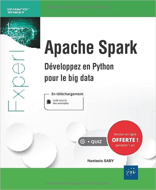 Ce livre sur le framework Apache Spark vous permet d'apprendre à développer des applications en Python en vous appuyant sur l'analyse et le traitement de données volumineuses ainsi que sur la notion d'apprentissage automatique.. Après quelques définitions de termes liés au domaine de la data, vous découvrez les fondements de Spark. Vous appréhendez l'architecture logicielle du framework, ses composants et les différents langages avec lesquels il est possible de développer.. Vous entrez ensuite concrètement dans la transformation de données. Fonctions numériques, alphanumériques, ajouts d'information, suppressions, agrégations de premier ordre et plus complexes sont à l'honneur. Des fonctionnalités plus avancées telles que les fonctions de fenêtrage et celles définies par les utilisateurs sont étudiées et les nombreuses API de Spark parcourues, tout en étant illustrées par des exemples.. Dans la suite du livre, l'auteur dévoile l'apprentissage machine. Apprentissage supervisé, non supervisé, profond et moteurs de recommandation sont autant de concepts détaillés. Vous découvrez les différents algorithmes présents dans Spark, les manières de préparer des données à l'entraînement ainsi que les possibilités d'évaluation d'un système prédictif au travers de plusieurs mises en pratique. Les notions d'arbres de décision, de forêts aléatoires, de réseaux de neurones, de régressions linéaires et de factorisation de matrices vous sont expliquées ainsi que le traitement des informations numériques et la vectorisation de textes.. Pour finir, un chapitre met en avant l'industrialisation de Spark. Déployer, déboguer et tester son application ainsi que les subtilités de l'outil pour assurer une performance optimale sont autant d'éléments cruciaux détaillés.. Si les exemples de code du livre sont en Python, langage aujourd'hui le plus utilisé avec Spark, certains sont en Scala, API la plus aboutie, pour vous apporter une vision complète du framework..