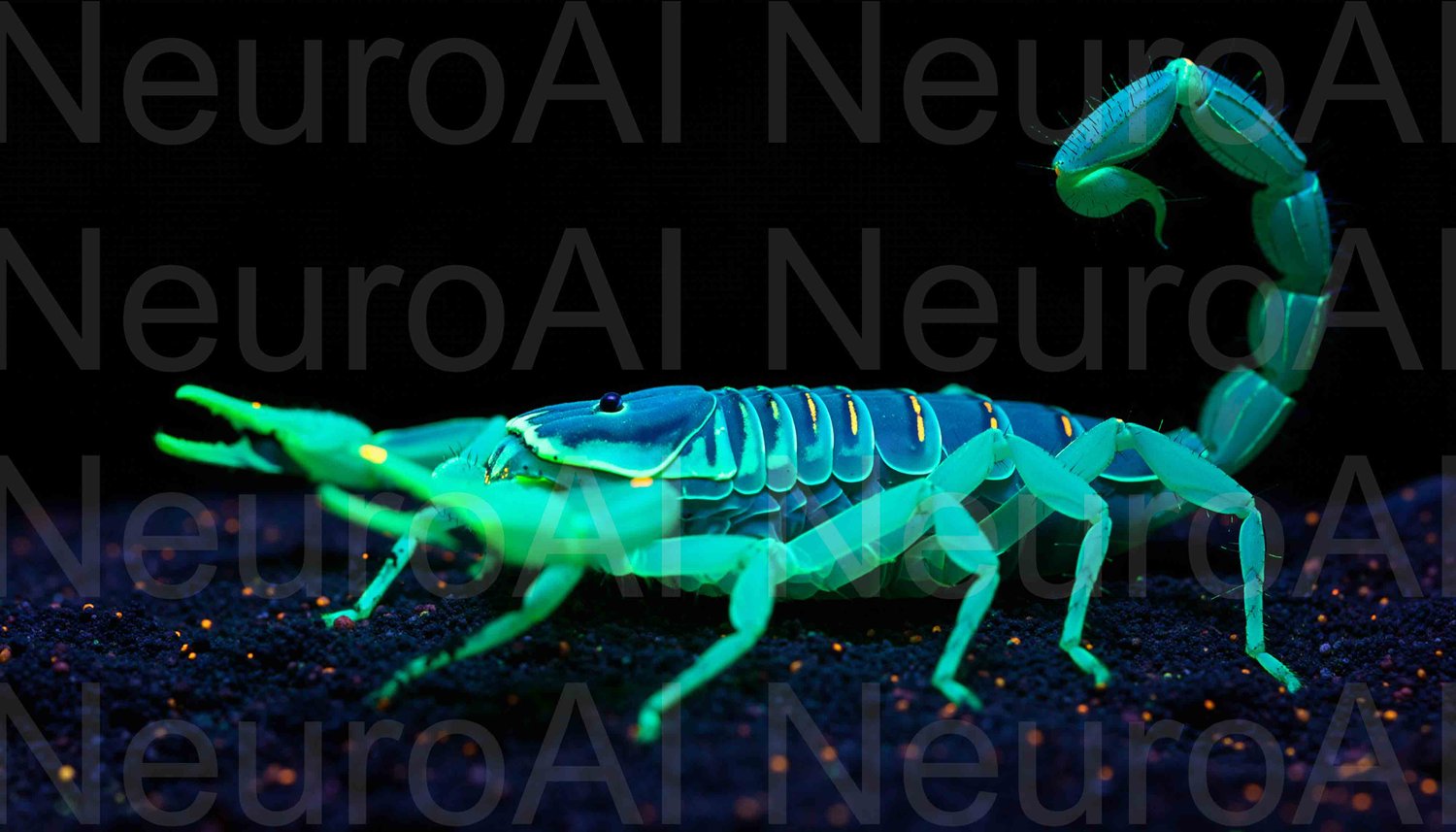 Glowing scorpion under ultraviolet light at night