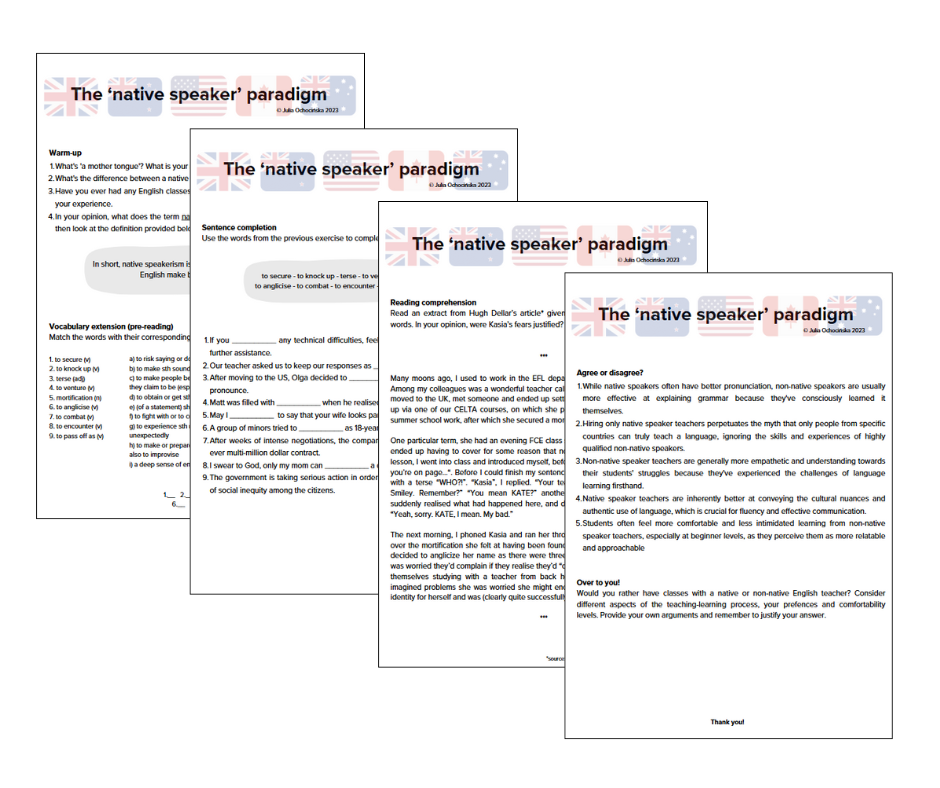 This lesson plan will tackle one of the most burning issues in the ELT industry and address certain consequences of the so-called 'native speaker' supremacy. Your students will be encouraged to express their preferences concerning the choice between native and non-native teachers and reflect upon the true nature of the issue.