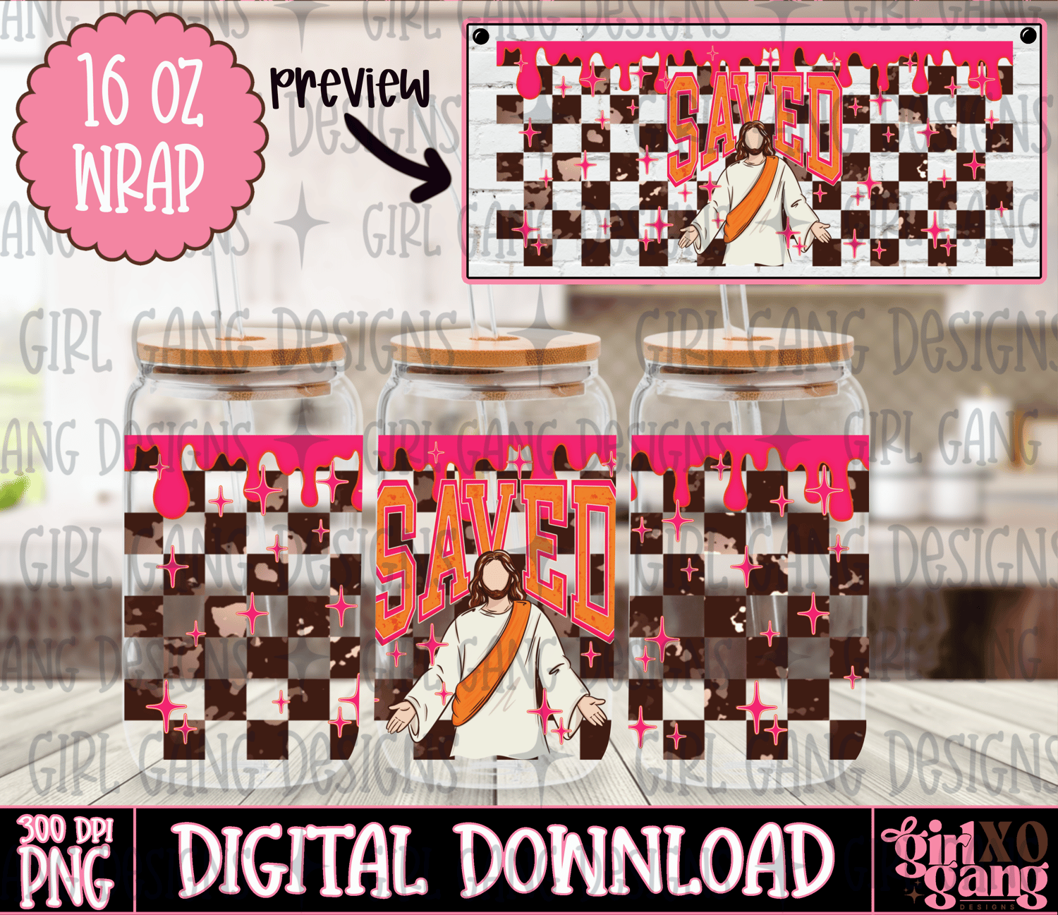 Saved Jesus faith checker 16 oz tumbler wrap png beach country