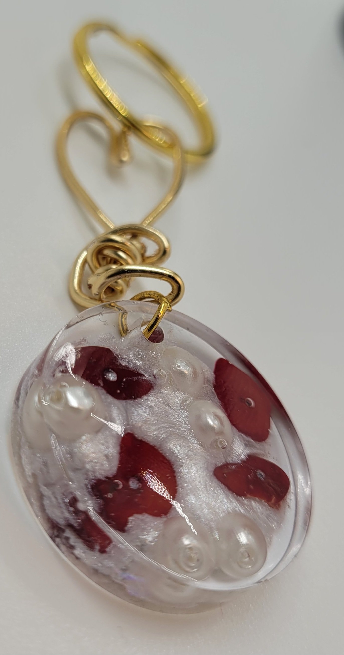 Introducing: Round White Glitter Pearl & Coral Gold Keychain