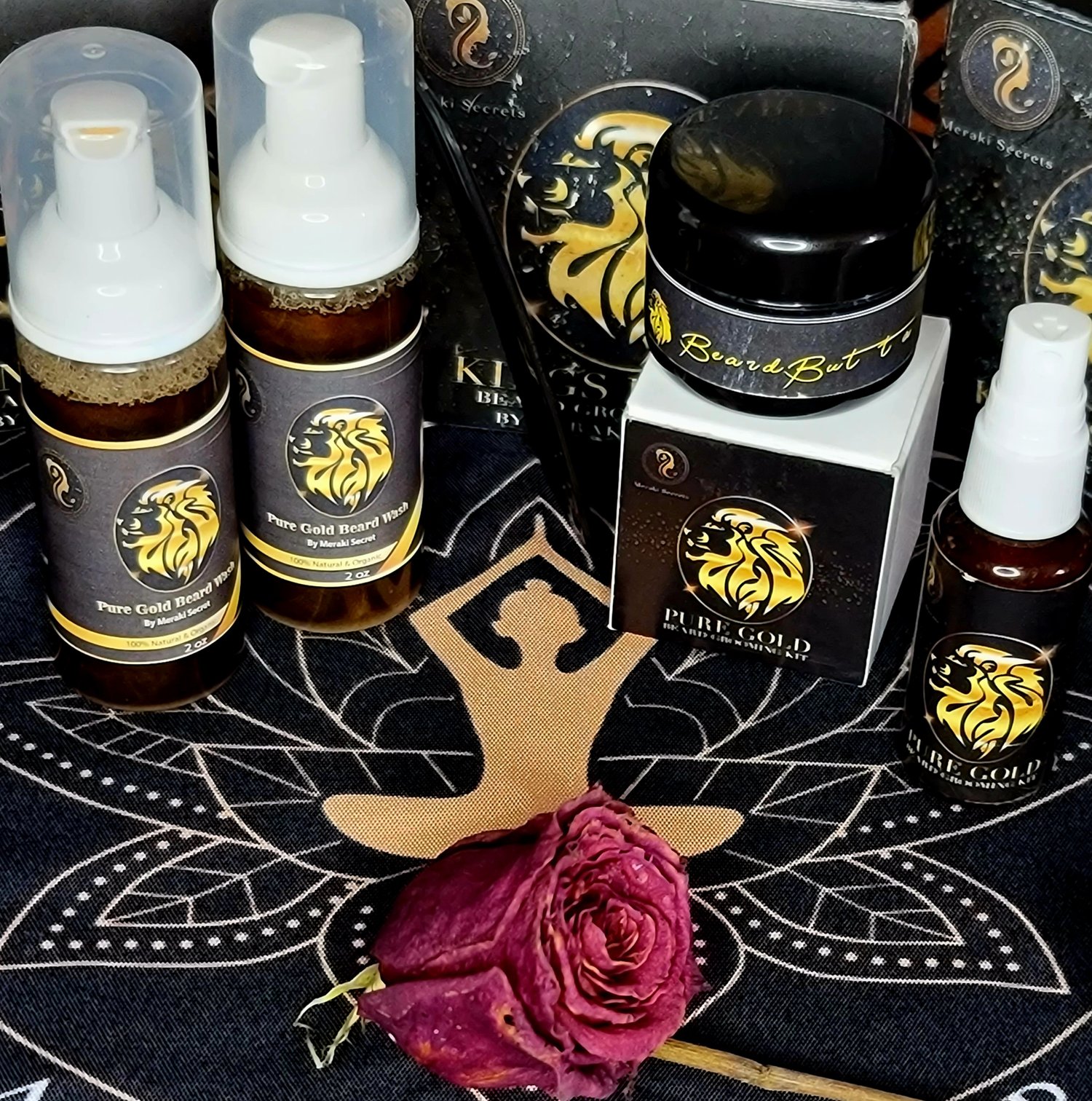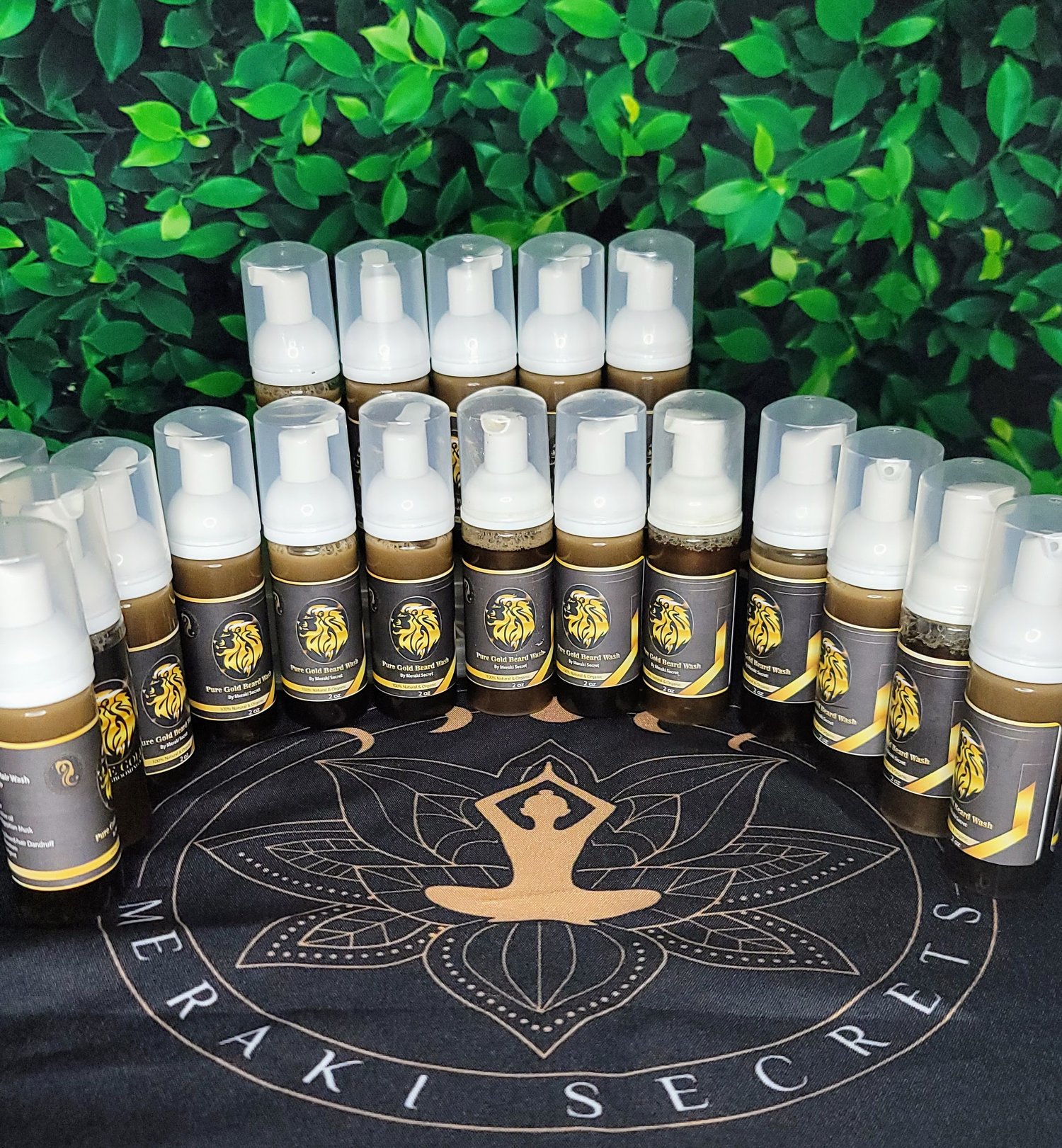 pure gold Beard wash: 100% All-natural African black soap, infused with Chebe oil , essential oil, Aloe Oil, Spring water, onion oil olive oil,