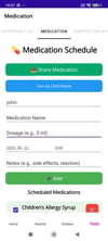 🛡 Allergy Tracker – Keep track of food allergies (like milk, nuts, gluten), environmental allergies (like dust, pets, pollen), medicine allergies, diabetes info, and emergency plans.