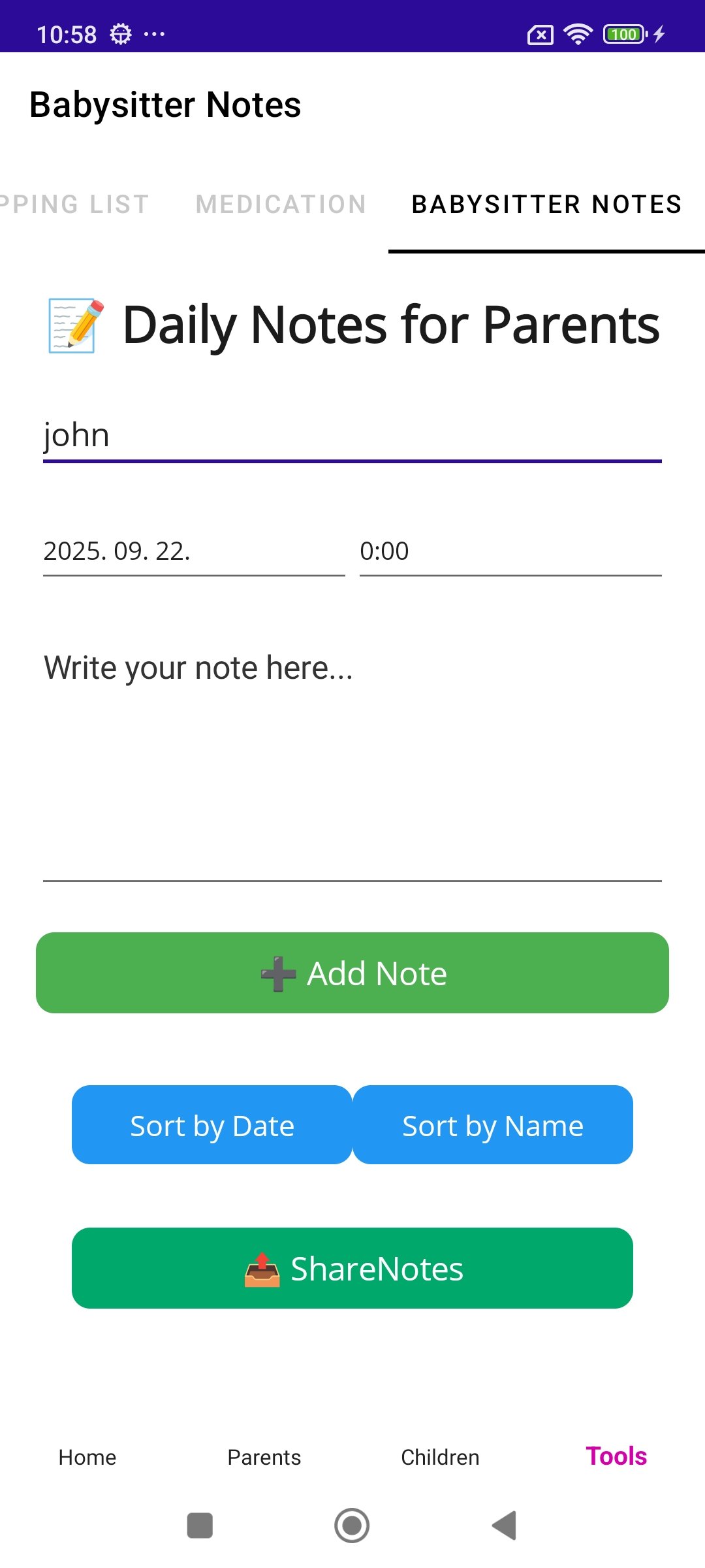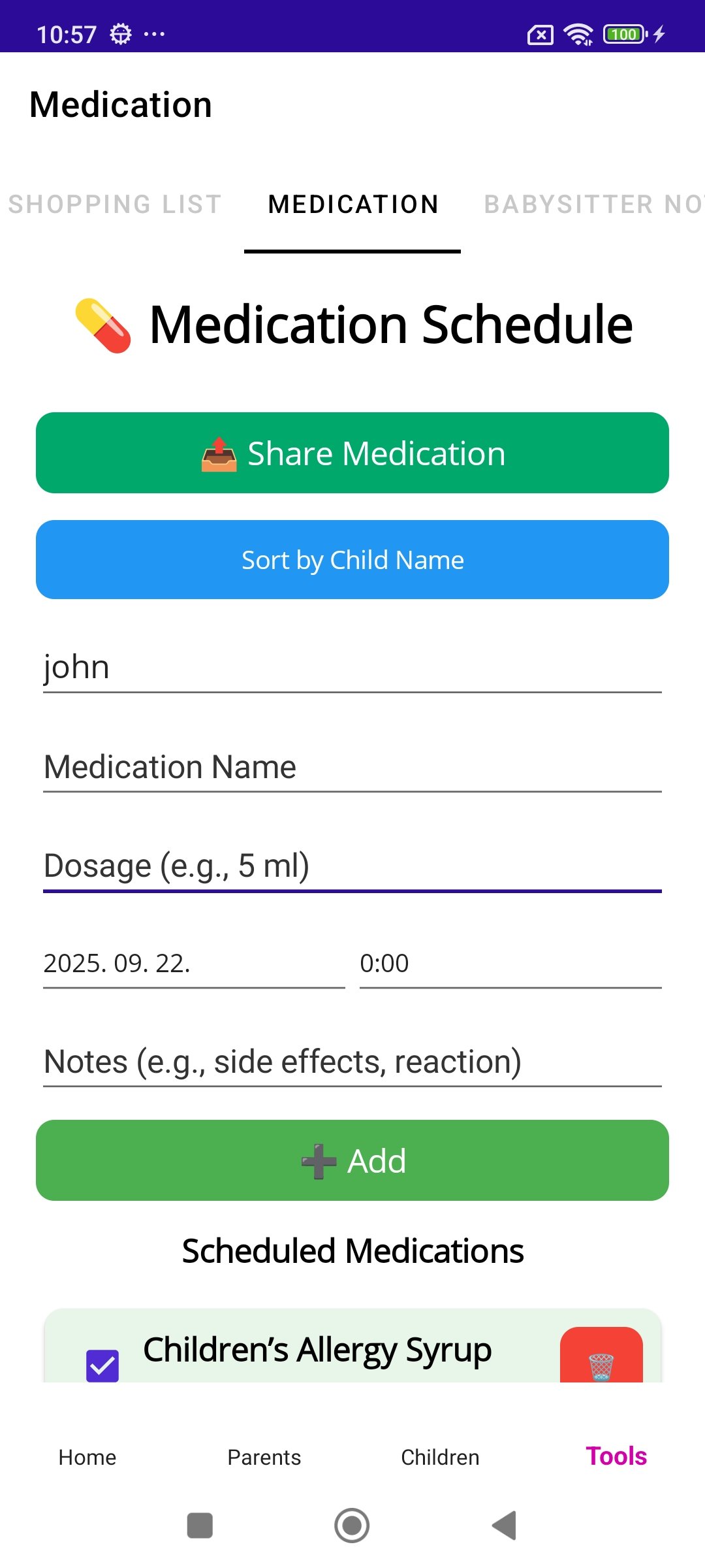 🔗 Share with Babysitters – Send child info, schedules, or shopping lists instantly.