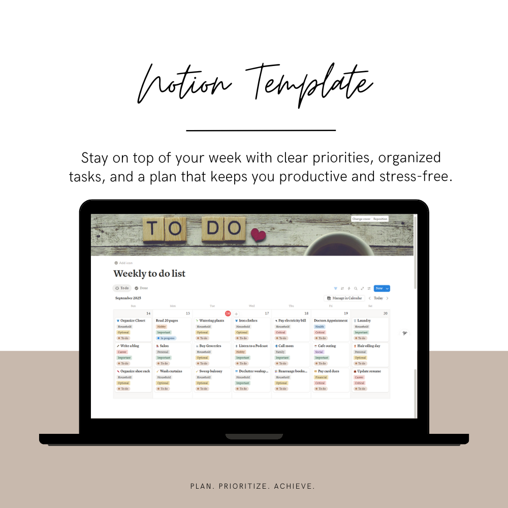 Stay organized and intentional with this weekly to-do planner 🗓️ in a clean calendar view. Each week becomes easier to manage as you track tasks with priorities ⭐❗✨ and keep life flowing smoothly across all areas. Perfect for balancing responsibilities and personal time while keeping your goals in sight 🌸.