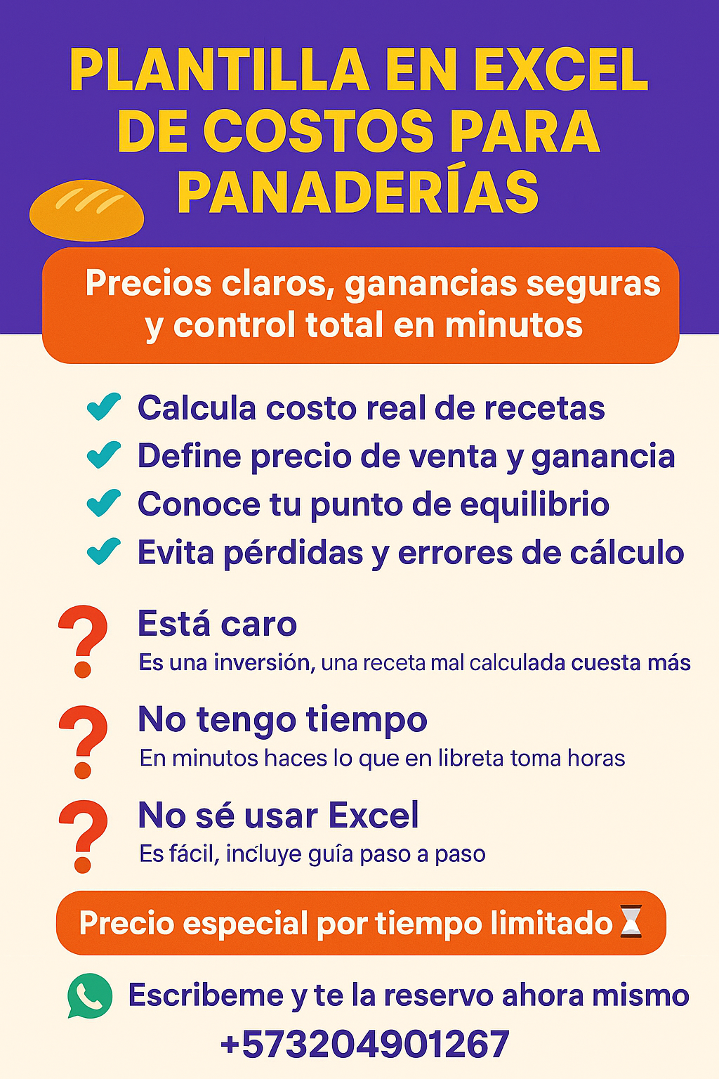 📊 Plantilla de Costo para PanaderÃa – ¡Domina tus números y maximiza tus ganancias!