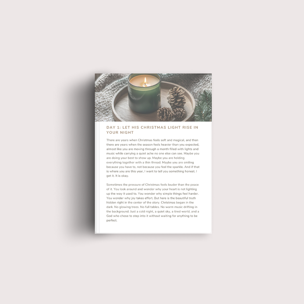 This devotional isn’t about forcing Christmas cheer or pretending everything’s fine. It is about letting Jesus meet you right where you truly are. It is about finding His peace in the rush, His kindness in your hands, His love choosing you and choosing through you in small, holy ways.