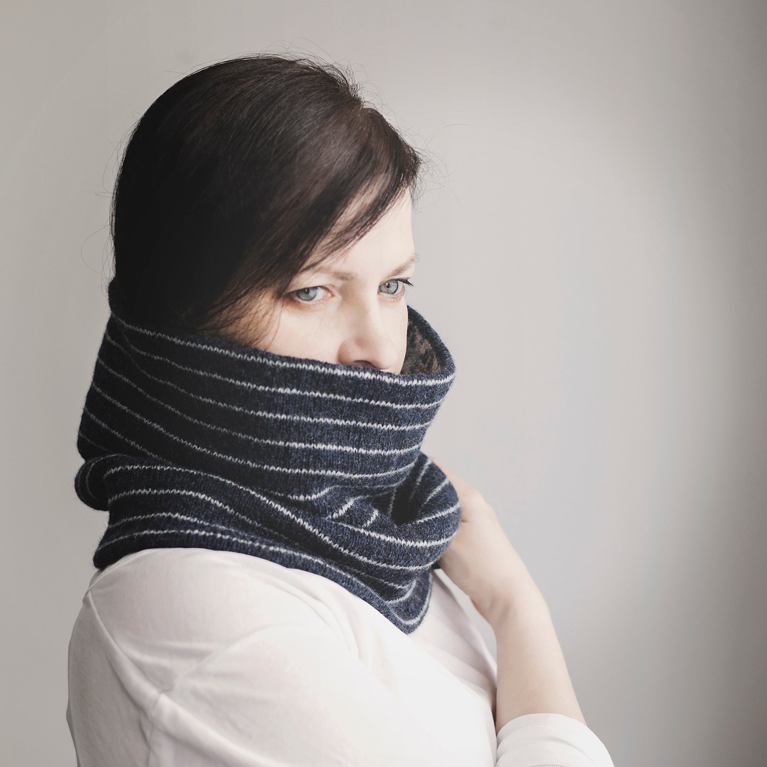 Personally, I love the sort of big, sturdy cowl that you can basically disappear in, and I also love colorwork and stripes, so I threw all those elements into the pot together, and out came this fun design. It was originally planned as the neckline for a sweater design, but I decided I wanted a bit more flexibility, which means it can be worked as an addition or companion to the (upcoming) sweater pattern or as an independent project. As it´s reversible, with different patterns on each side, you get two looks in one. It also makes a very useful “swatch with a purpose” for the sweater.