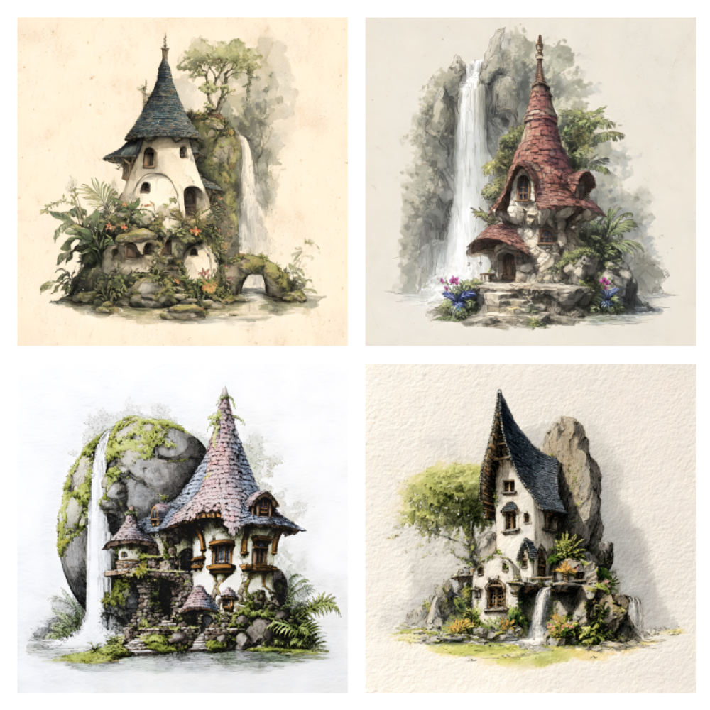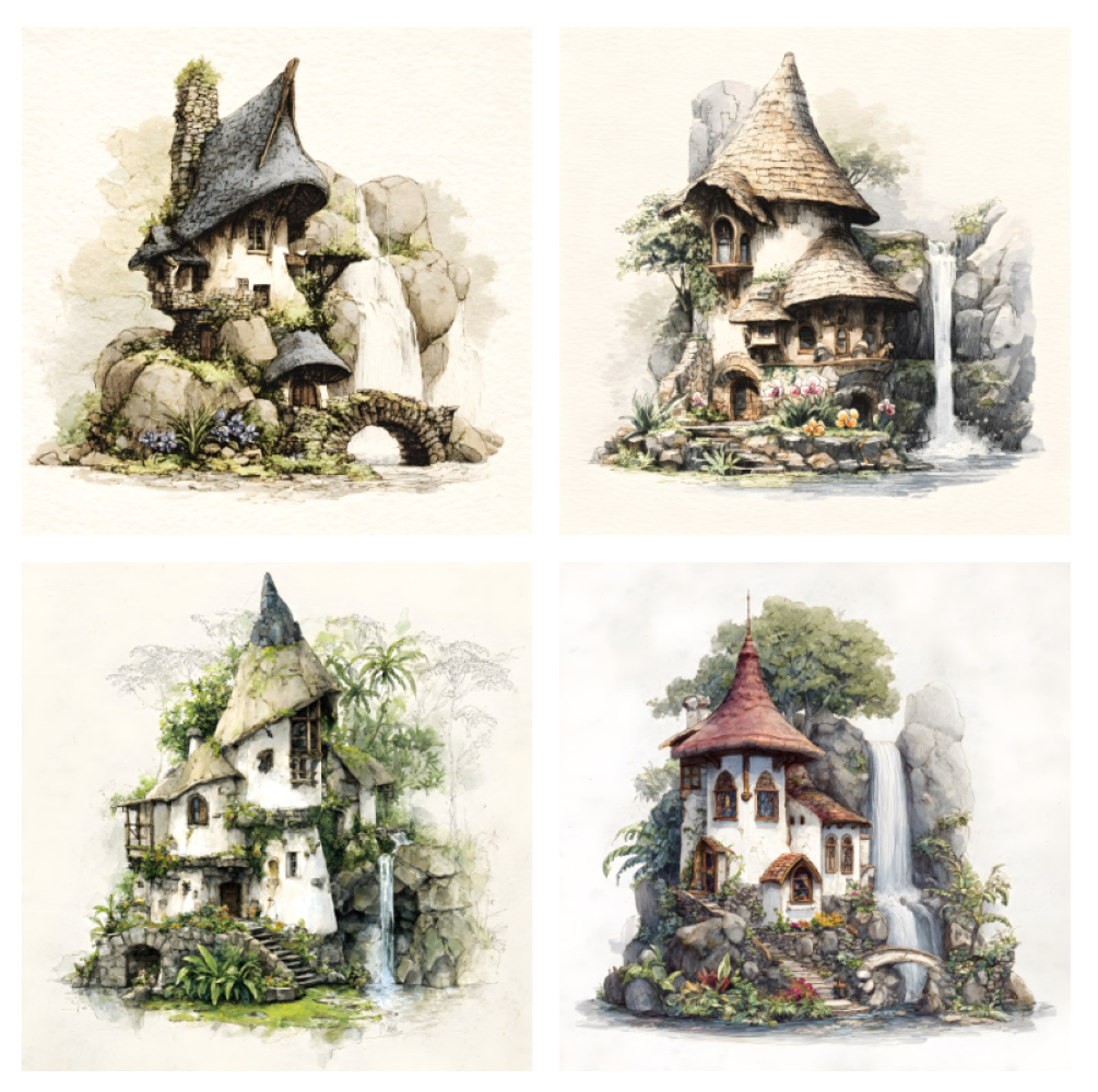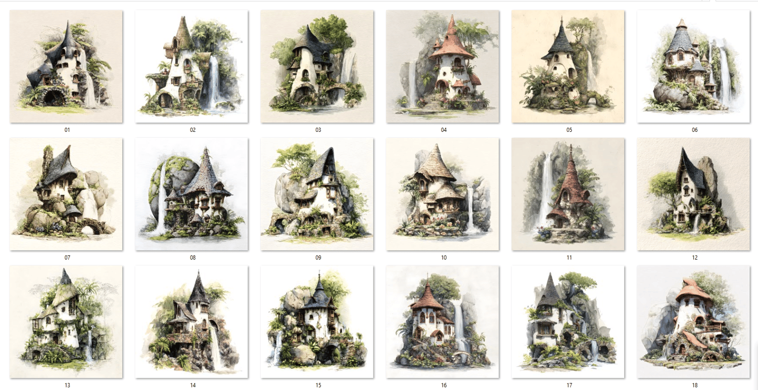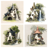 18 AI-generated JPG digital art prints – Fantasy Storybook Houses– Whimsical Architecture Art Prints, whimsical tower illustration, fantasy tower overgrown building art. High resolution 300 DPI, square format, 3600x3600 pixels, ready for print or digital use. Instant download, no physical product. Commercial license included.